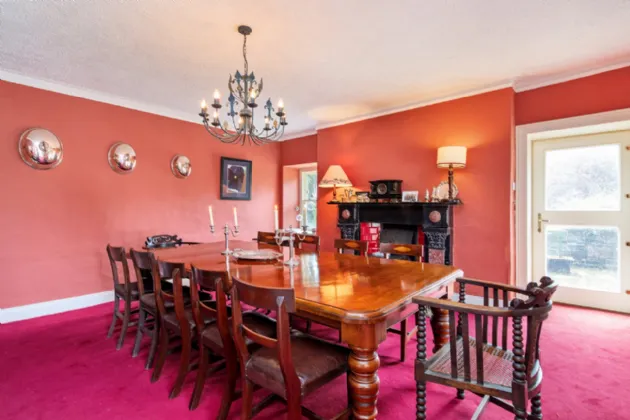 Ballinapark House enjoys a secluded and private setting, surrounded by picturesque parkland and offering scenic views over the Blackstairs Mountains. A long driveway, secured by electric gates, leads to the property, ensuring both privacy and security.