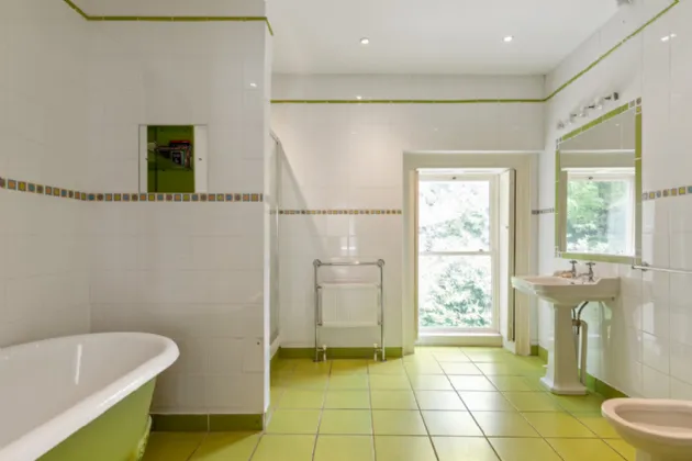 As you ascend the stairs to the first floor, the return landing leads to two generously sized double bedrooms and the main bathroom, which is equipped with a shower, toilet, bidet, and a free-standing bathtub. At the top of the stairs, there are two more spacious double bedrooms, both offering stunning views of the surrounding garden and parkland. One of these is the principal bedroom, which includes an ensuite bathroom with a toilet, shower, and vanity unit.
