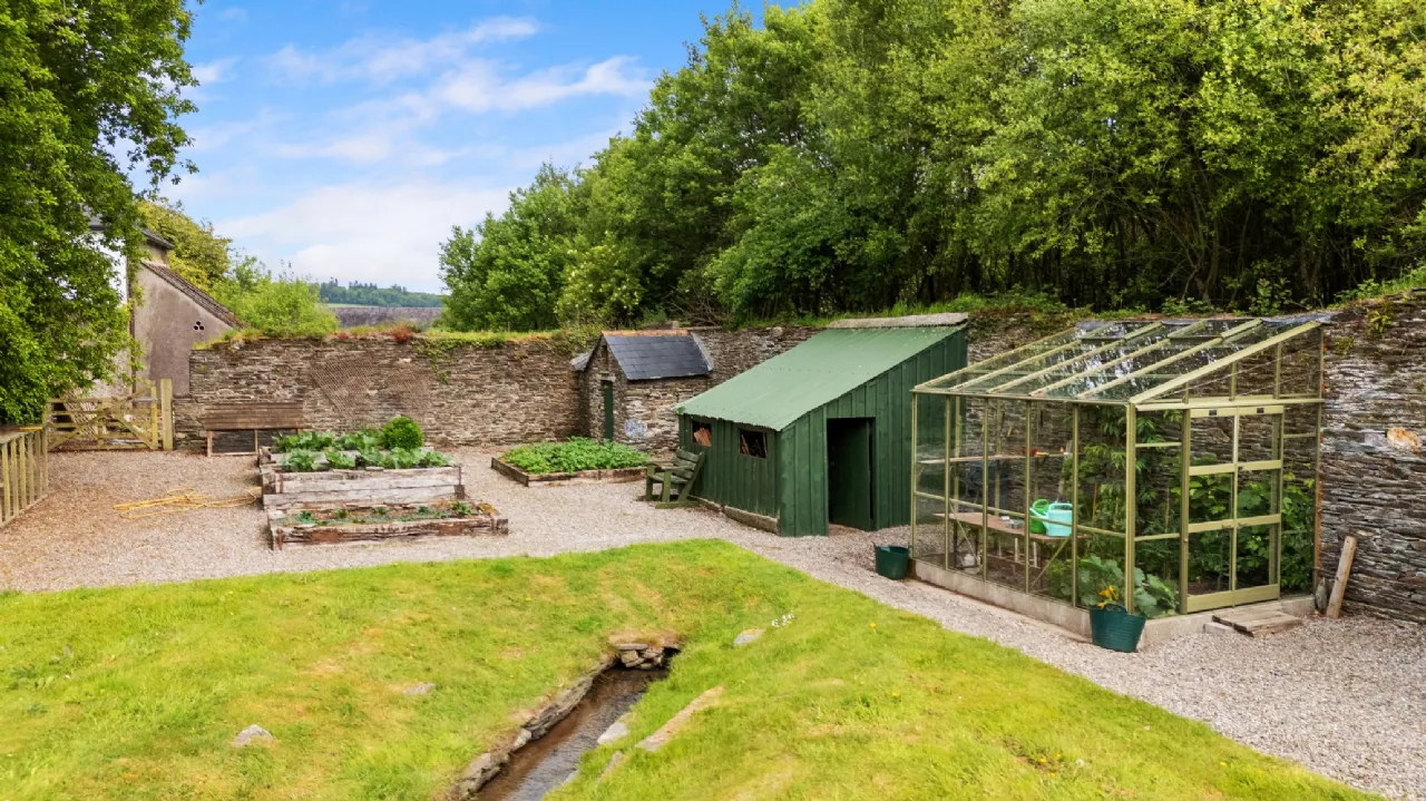 As you arrive, you are greeted by a large gravel forecourt that seamlessly transitions into a sprawling lawn, bordered by mature trees and shrubs. To the side and rear of the house, an enclosed walled garden provides a tranquil retreat, with neatly maintained lawns separated by meandering gravel paths. The garden is adorned with a variety of plants and shrubs and features a dedicated area with raised beds sewn with a wide range of vegetables, complemented by a greenhouse and a nearby garden tool shed.