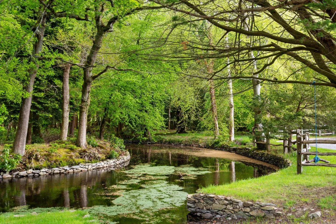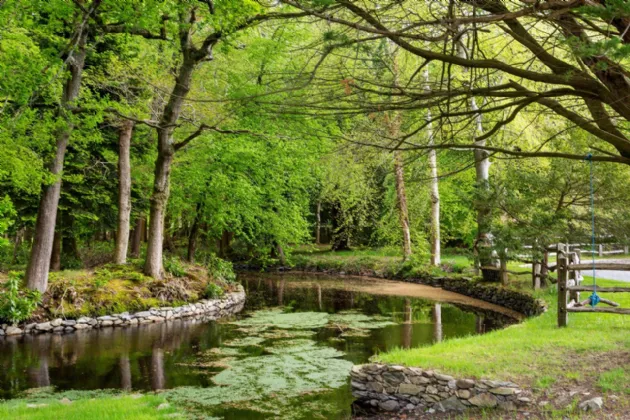 Among the estate's expansive grounds, a walled 2.5 acre garden surrounds the ruins of Dunran Castle Within this tranquil sanctuary, one can wander amidst the ancient stone walls. From the tranquil waters of the Oxbow pond, where islands and a thatched boat house to the championship-size tennis court and equestrian arena, where sporting enthusiasts can indulge in their favourite pastimes amidst breathtaking scenery.
