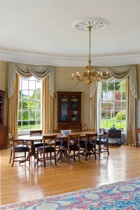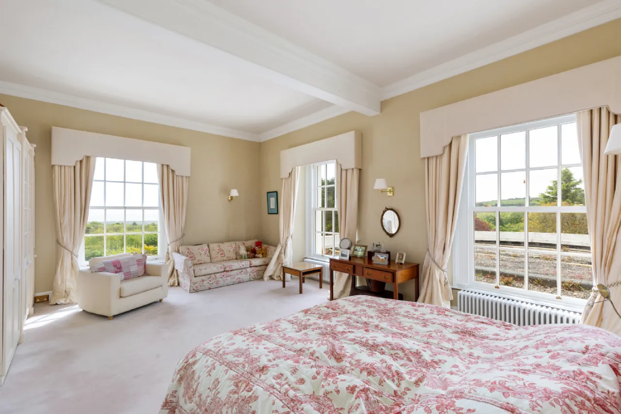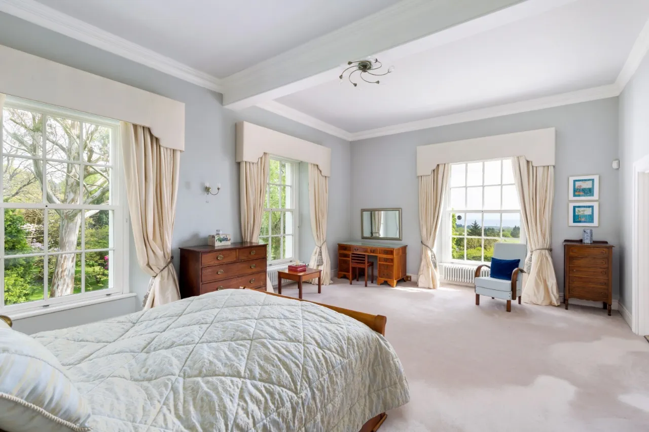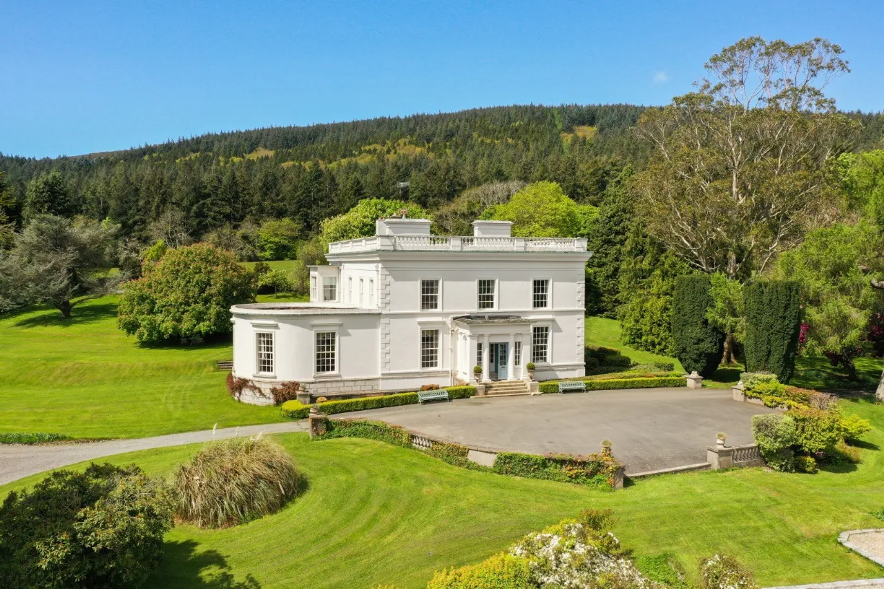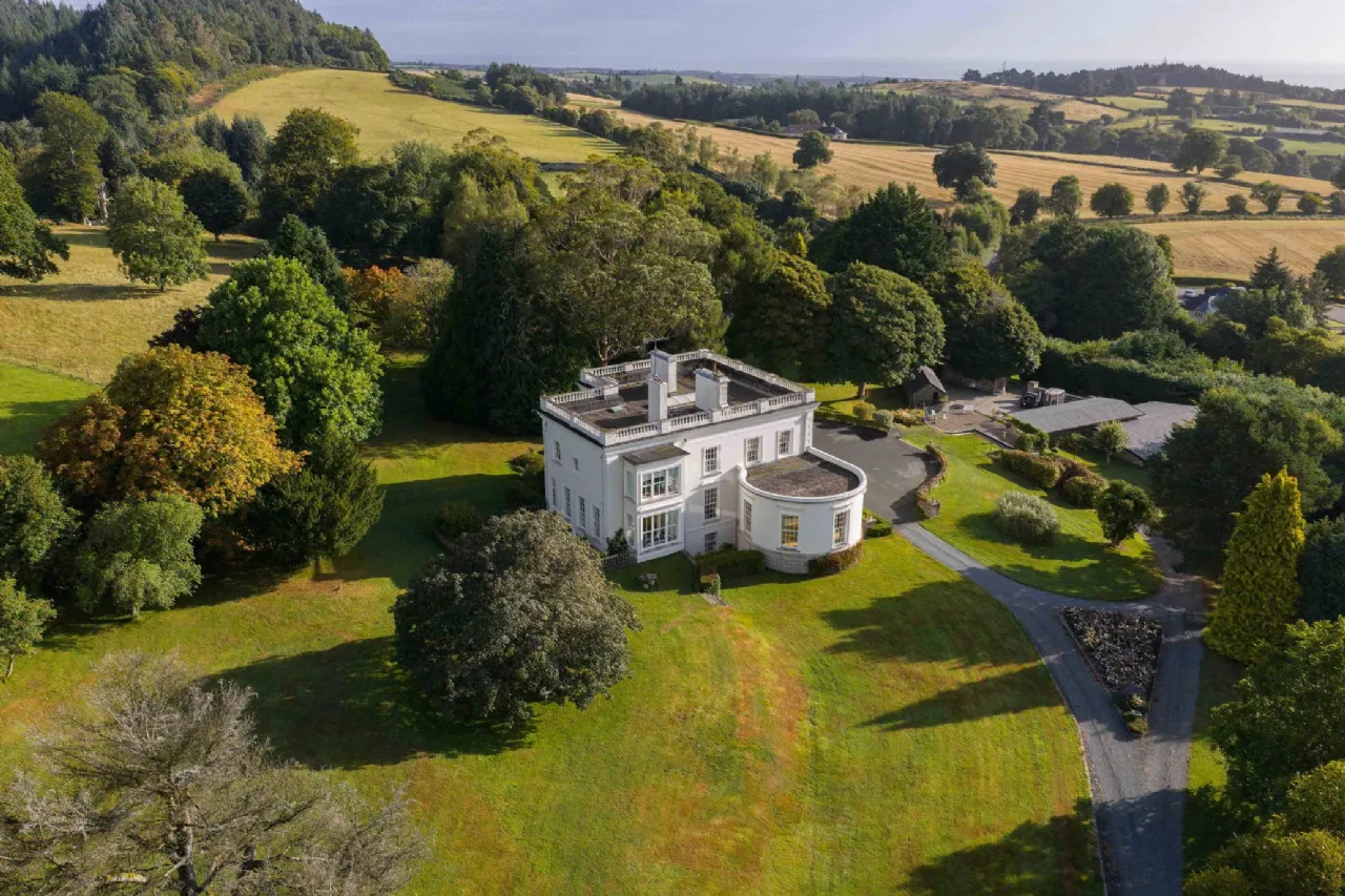 Dunran Demesne is the quintessential example country estate lifestyle. With its sprawling grounds and panoramic views of the Irish sea and Wicklow mountains, Dunran Demesne offers a tranquil retreat just 22 miles south of Dublin, near the M11. The property's freehold ownership extends over areas of forested hills and lakes, affording exclusive access to outdoor recreational activities such as hiking, fishing, and riding. The centrepiece of this historical estate is its elegant late-Georgian residence, meticulously restored and renovated to blend historic charm with modern amenities. Boasting spacious reception rooms including a ballroom with bow window, luxurious bedrooms, and a kitchen equipped with state-of-the-art appliances, the residence offers a comfortable and luxurious living experience. Whether hosting formal gatherings in the grand ballroom or enjoying Al Fresco dining in the gardens, Dunran Demesne is surround by elegance and sophistication at every corner.