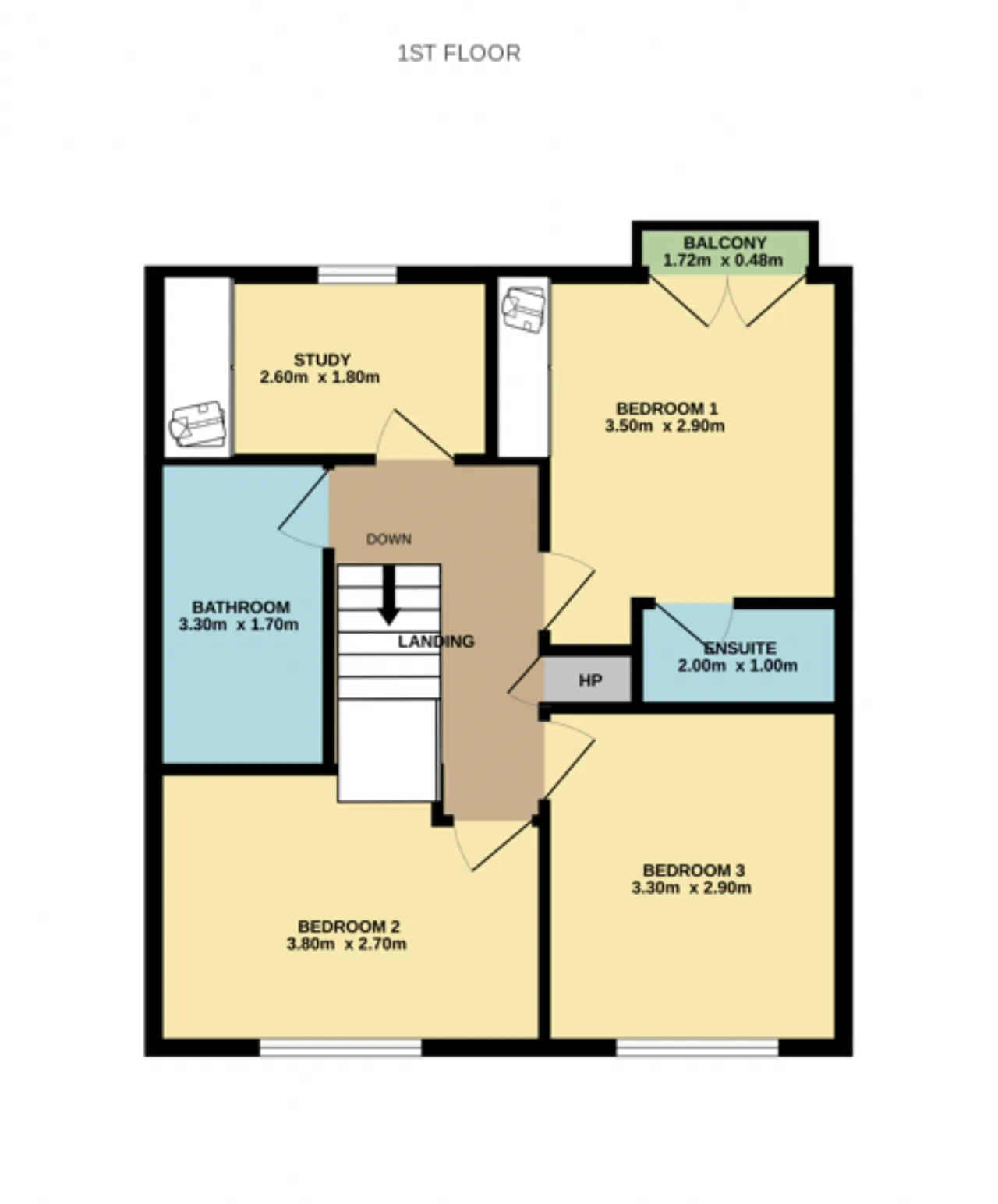 Bedroom 3 3.30m x 2.90m Carpet flooring, Built-in wardrobe.