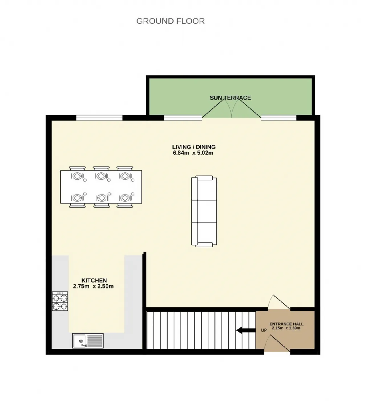 The property briefly comprises entrance hallway that leads to a generous open-plan living and dining area. The room features elegant solid oak flooring and large glass double doors, flooding the space with natural light and providing access to a private terrace ideal for al fresco dining or entertaining guests. The separate shaker-style kitchen is well-appointed, while the three generously sized double bedrooms (with the master benefiting from an ensuite) ensure comfort and privacy. The family bathroom has been upgraded with stylish tiles.