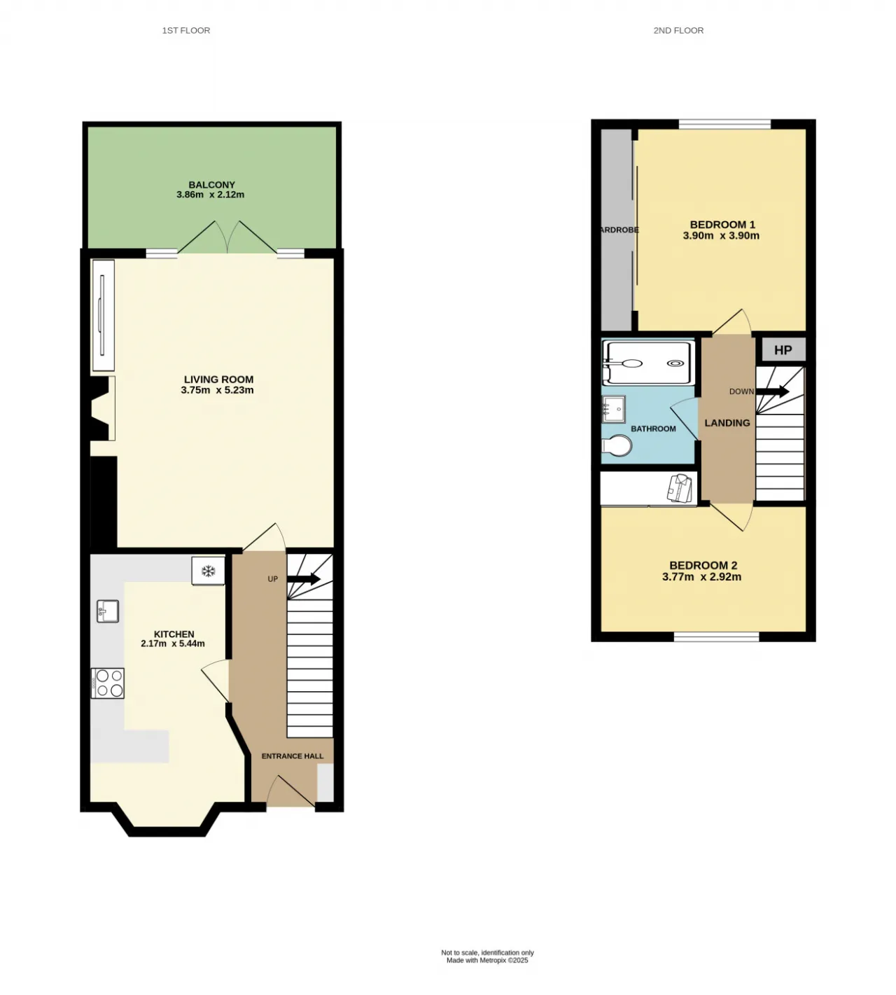 Bedroom 2 3.77m x 2.92m Generously sized double bedroom with a front-facing window, built-in wardrobes, providing ample storage and laminate flooring.