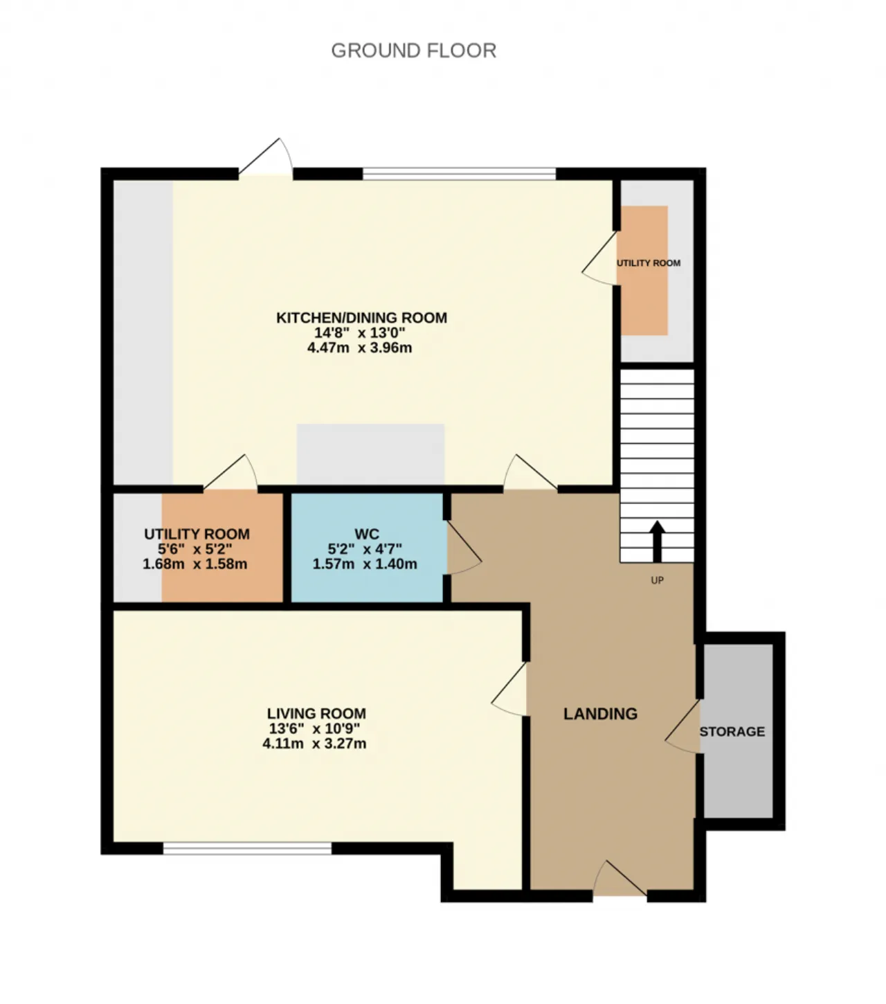 Utility Room 1.68m x 1.58m Located adjacent to the kitchen, this practical utility space is perfect for daily chores, featuring plumbing for a washer and dryer, eye-level storage units, and countertop workspace.