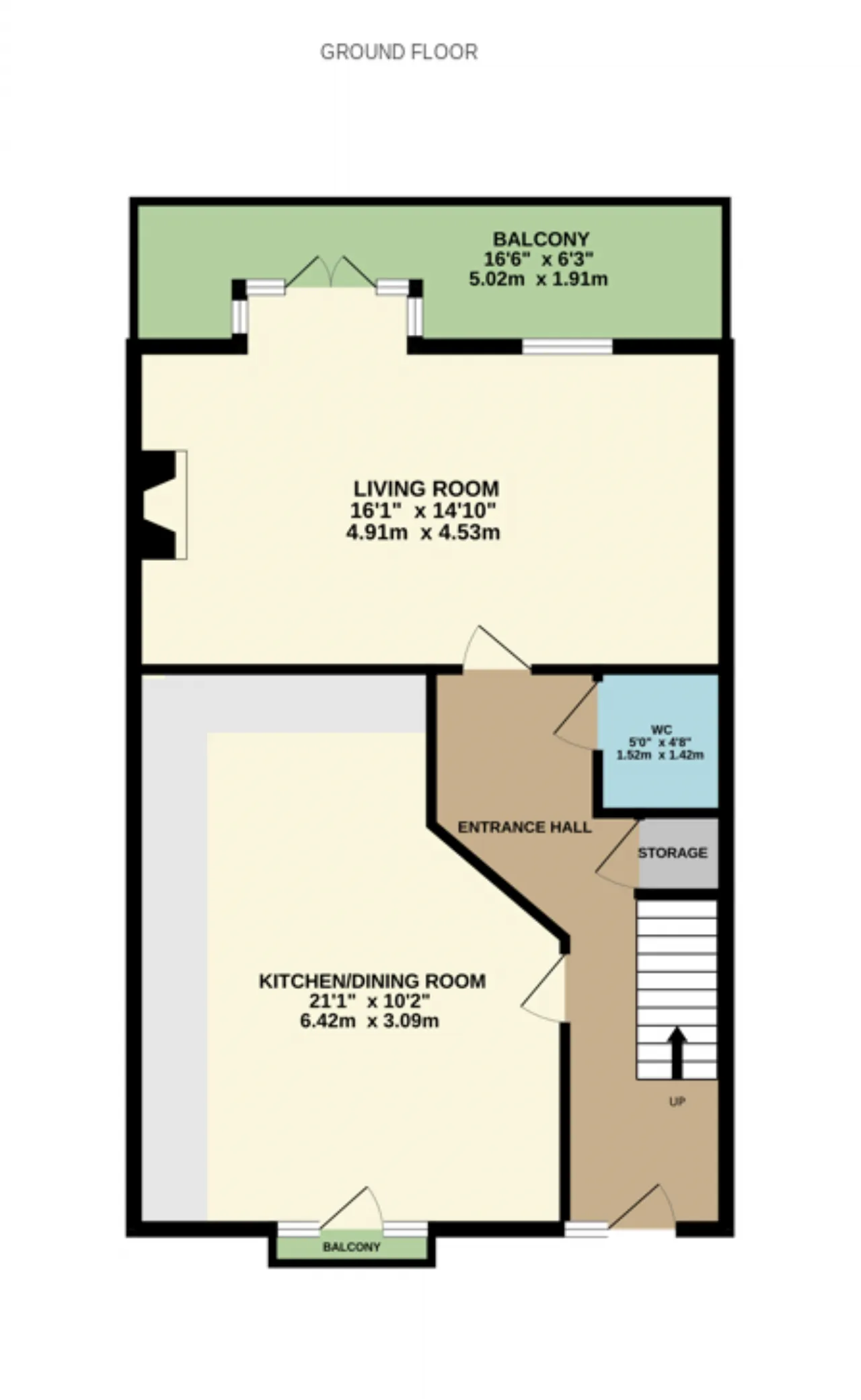 Bedroom 3 4.82m x 2.21m A very spacious single bedroom (with capacity to accommodate a double bed), featuring solid wood flooring, built-in wardrobe, and newly installed triple-glazed windows.