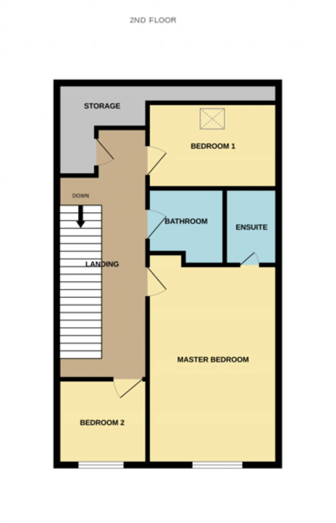 Second Floor Bathroom 2.07m x 1.65m Fully Tiled Floor, Partly Tiled Walls, Wash Hand Basin and Water Closet, Stand in Shower and Heated Towel Rail