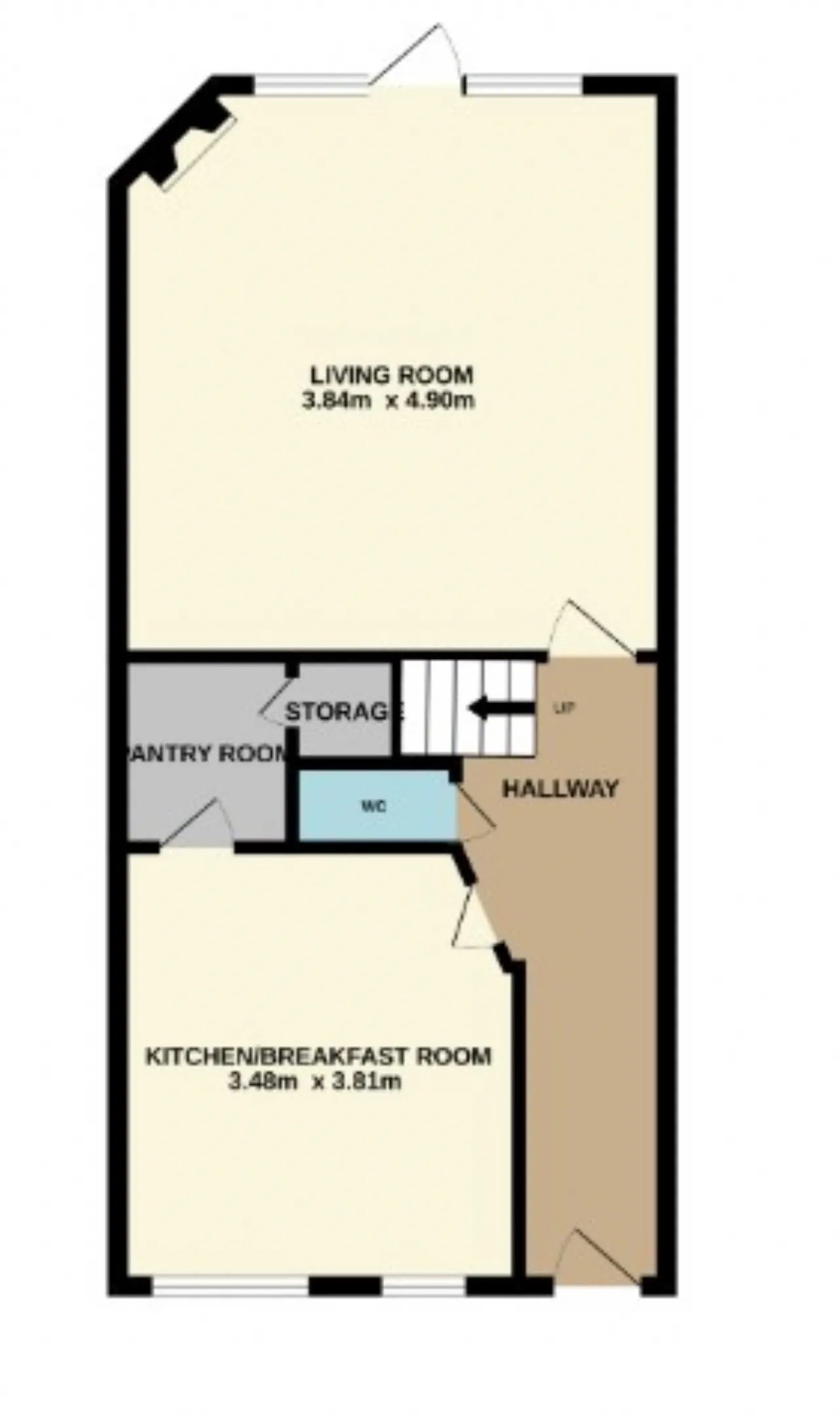 Living Room 3.84m x 4.90m A bright living room to the rear of the property with brand new carpet, feature fireplace with wrought iron hearth and marble surround, wooden mantlepiece, ceiling coving, dado rail, access to terrace.