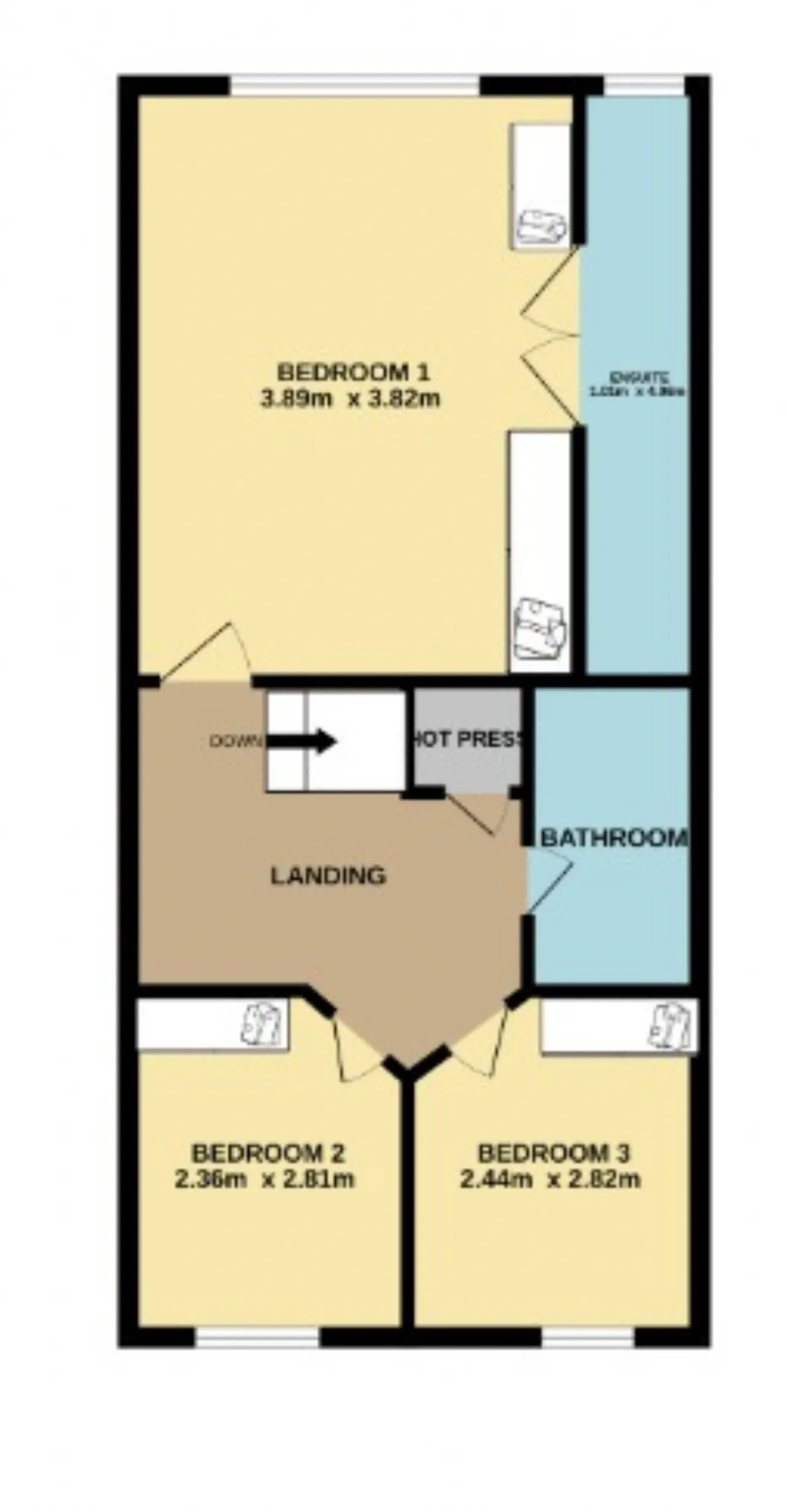 Bedroom 3 2.84m x 2.82m A single bedroom to the front of the property with carpeted floors, built in wardrobes and electric radiator. This could also be used as a study/ home office if desired.
