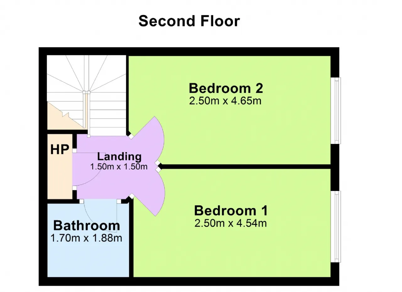 Bedroom 2 2.50m x 4.65m Double bedroom with laminate wood flooring, centre light and built in wardrobe.