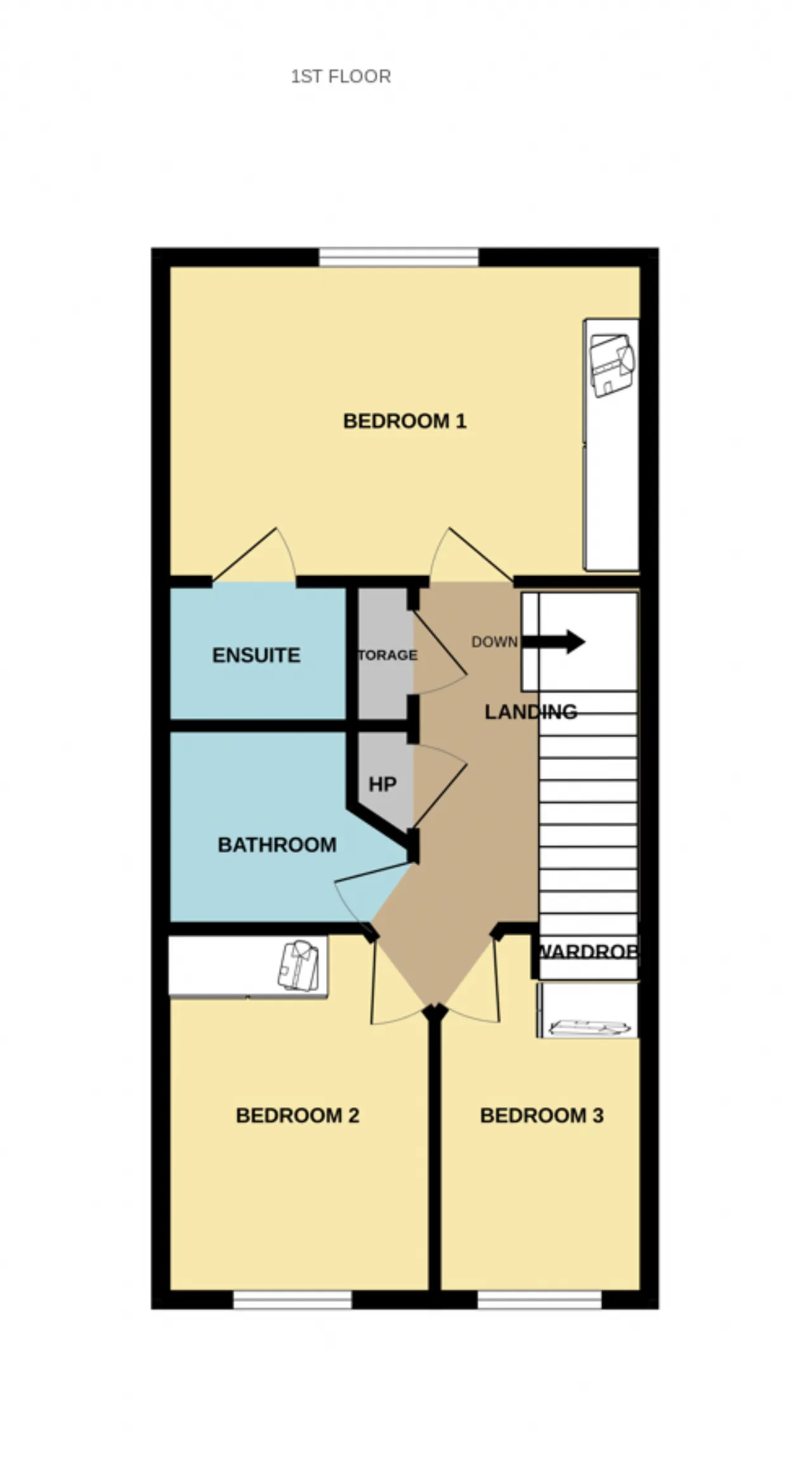 Landing 2.8m x 1.9m Carpet, hot press, storage closet and attic access.