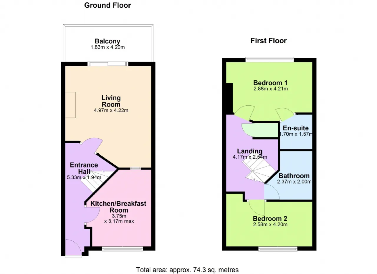 Bedroom 2 4.20m x 2.58m Double bedroom with luxurious carpet flooring.