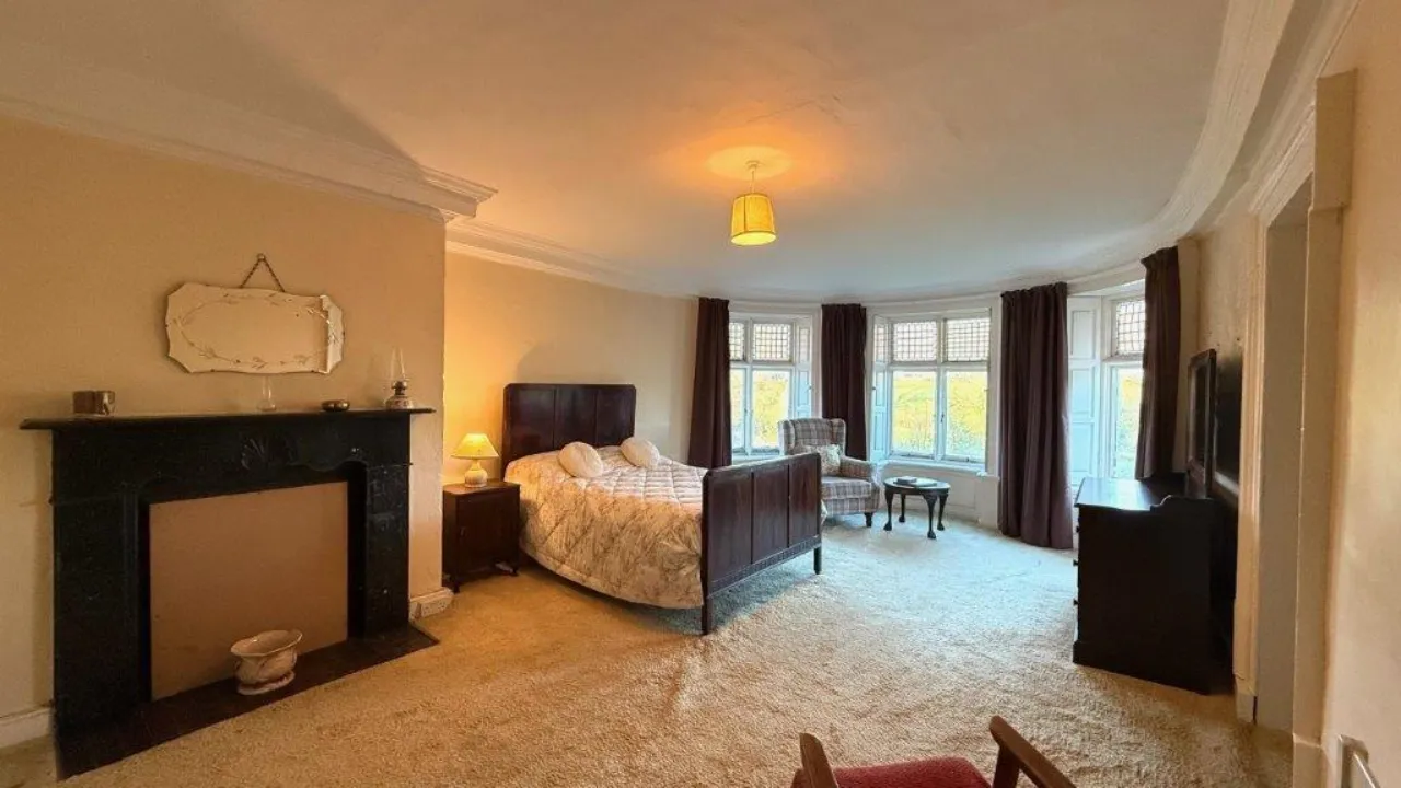 Bedroom 3 4.820 x 4.484 Marble fireplace. Windows on two walls.