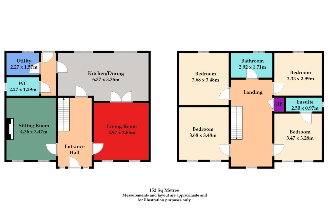 This generously proportioned home, extending to 152 sq. m. approx., offers bright adaptable accommodation ideal for family living. The ground floor features a spacious entrance hall with enclosed understairs storage, two inviting reception rooms, and a shaker style hand painted fitted kitchen within the kitchen / dining room. A fully fitted utility room and a guest w.c. complete the downstairs layout. On the first floor 4 bedrooms,, 1 en-suite and the main bathroom