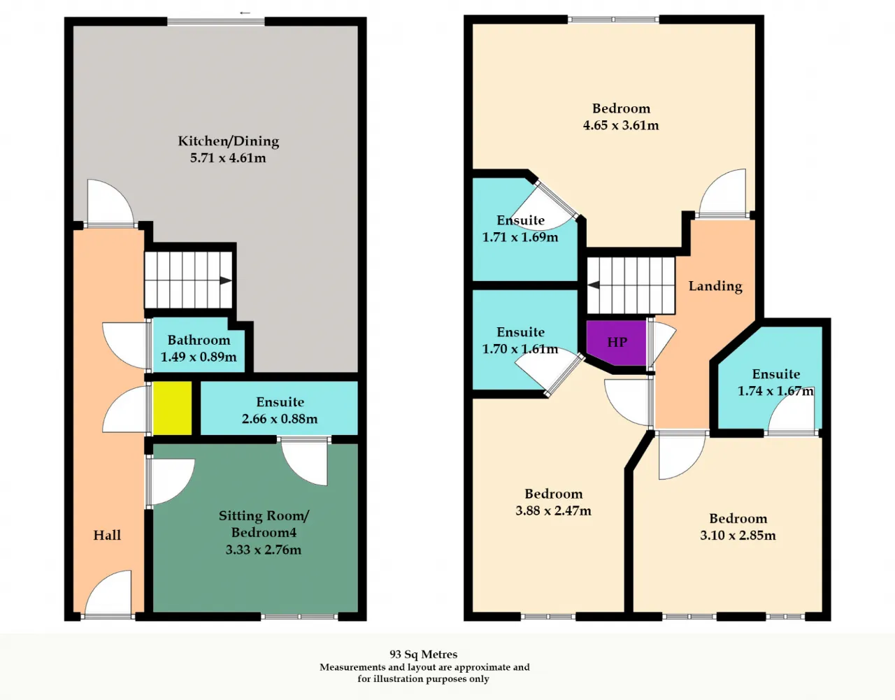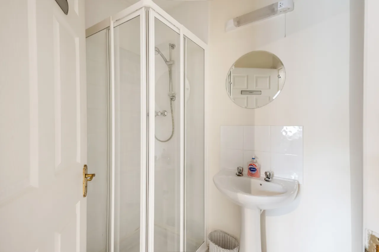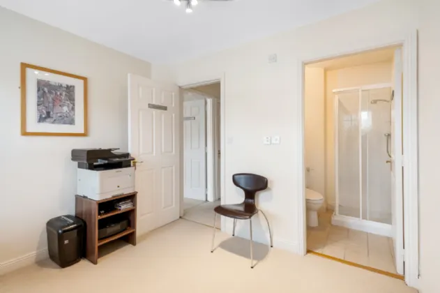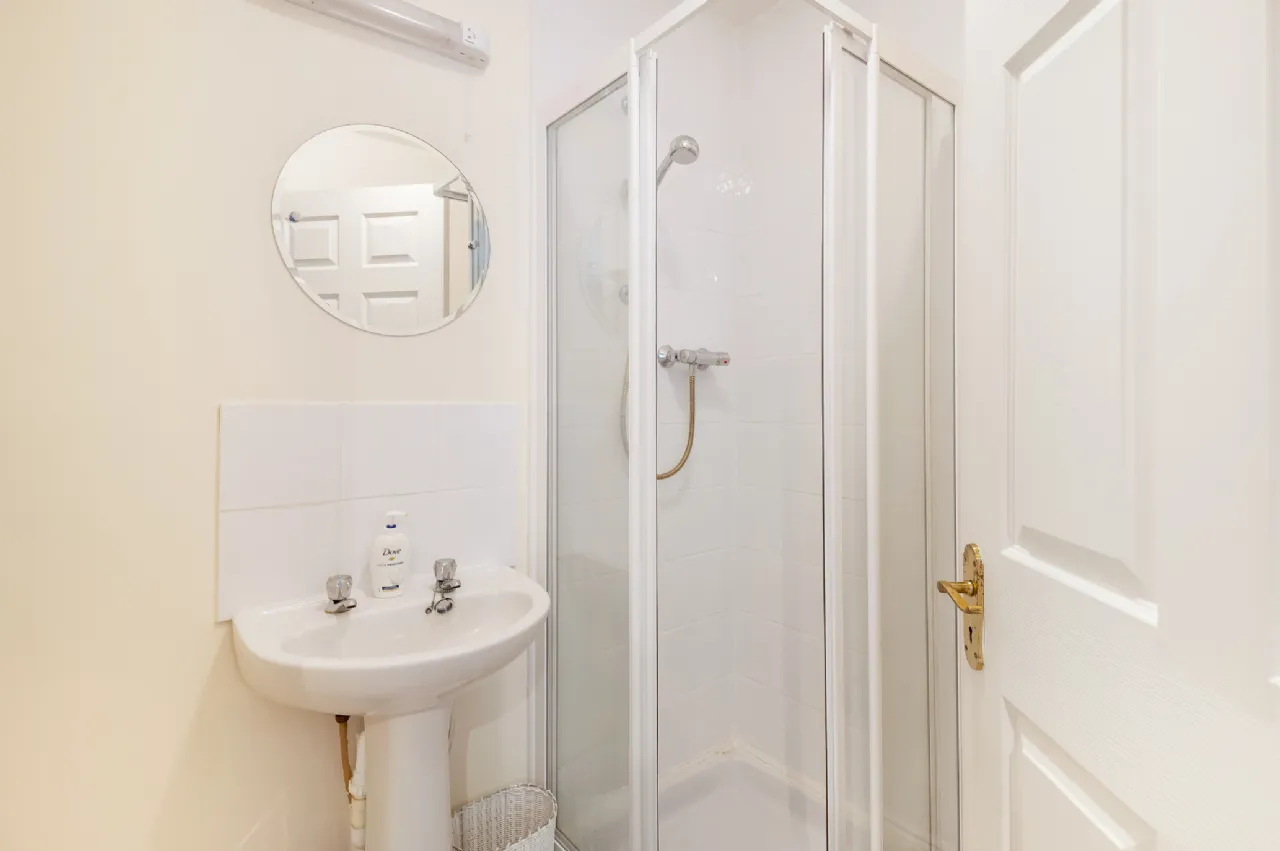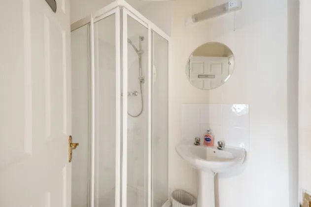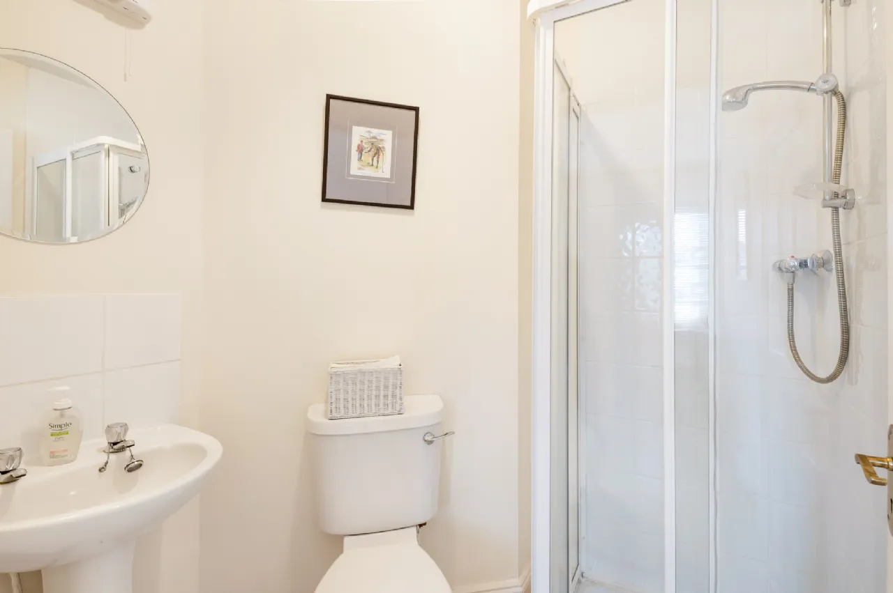 Ensuite 1.74m x 1.67m Tiled flooring, part tiled, w.c. wash hand basin, shower.