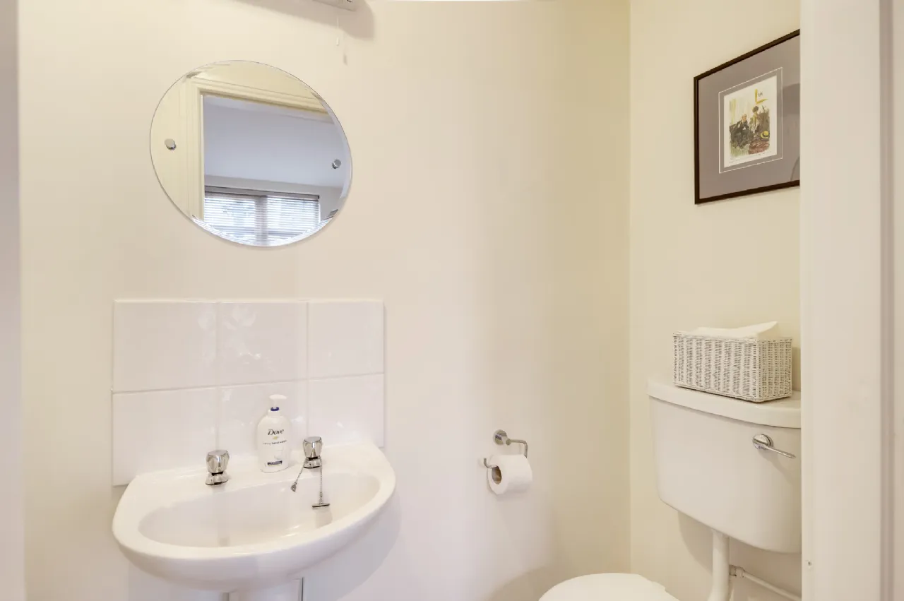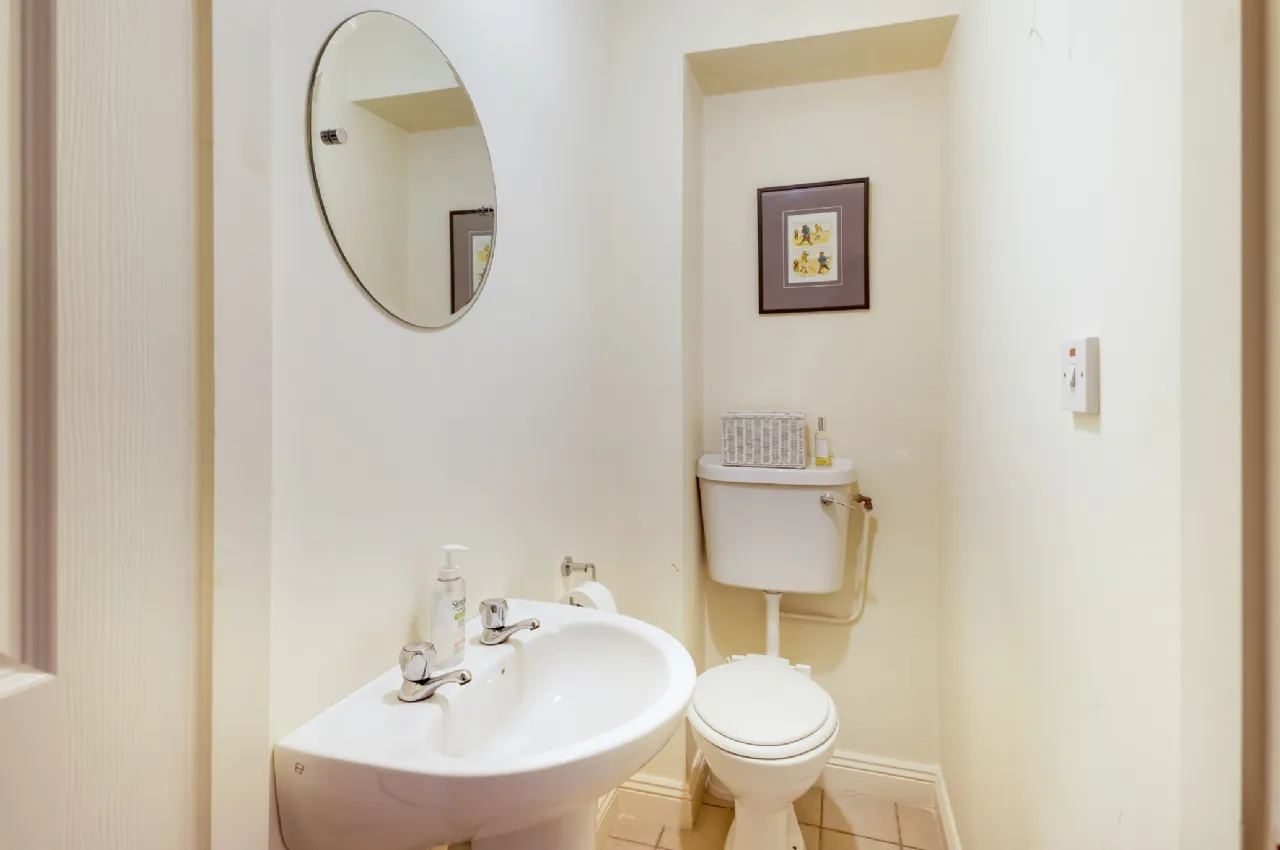 Guest w.c. 1.49m x 0.89m Tiled flooring, w.c. wash hand basin.