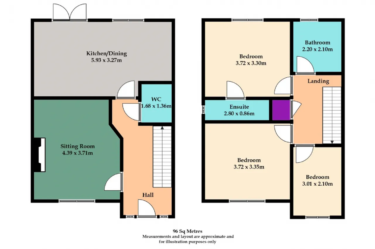 Presented in pristine condition throughout the property extends to 96 sq. m of well-designed accommodation providing the perfect requirements for family living. Tastefully decorated throughout this charming home offers a turnkey opportunity for the discerning purchaser. The ground floor comprises entrance hall, living room, kitchen / dining room and guest w.c. On the first floor there are 3 bedrooms (one en-suite) and a family bathroom.