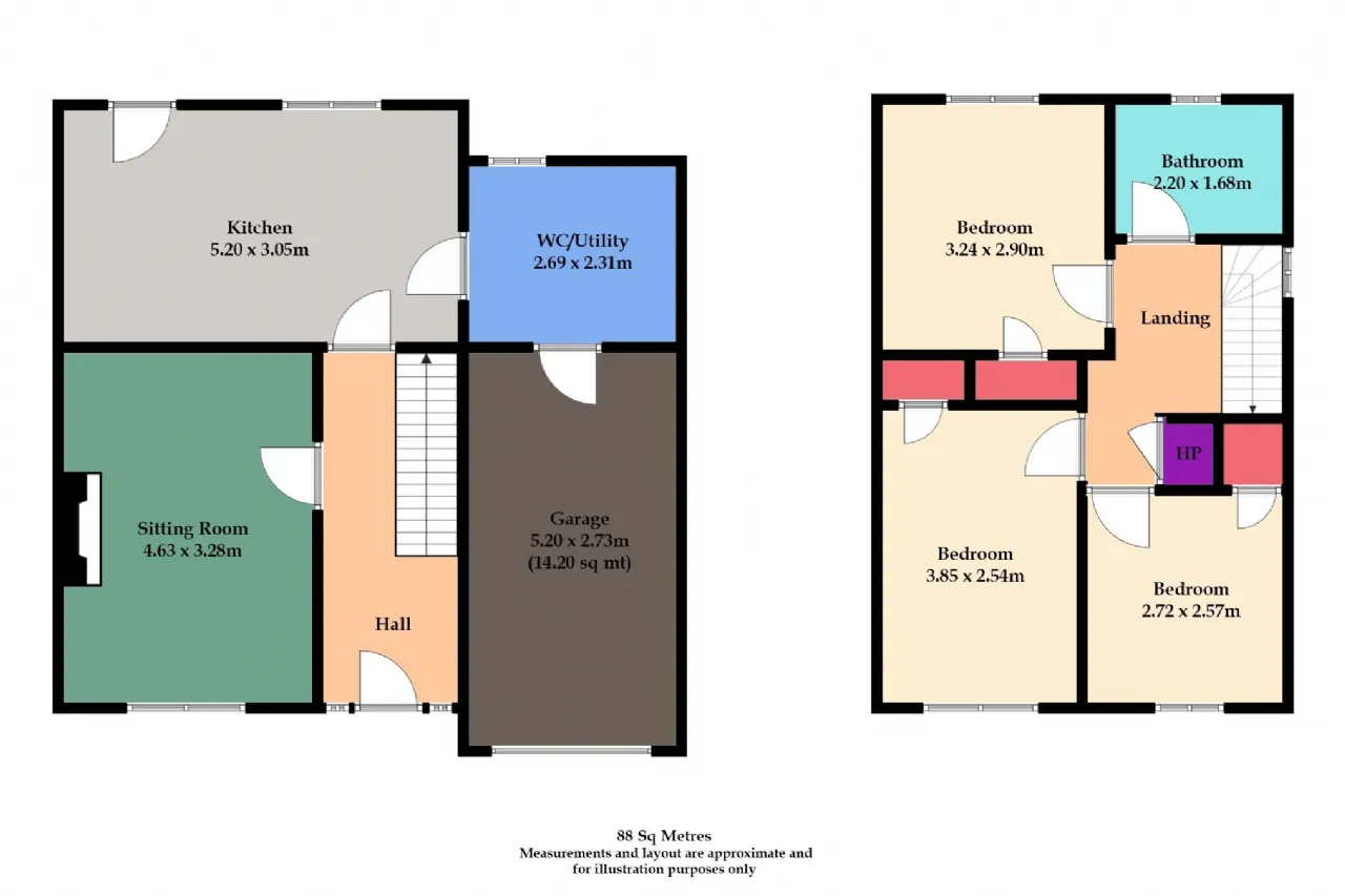 Integrated garage extending to 14sq.m approx.