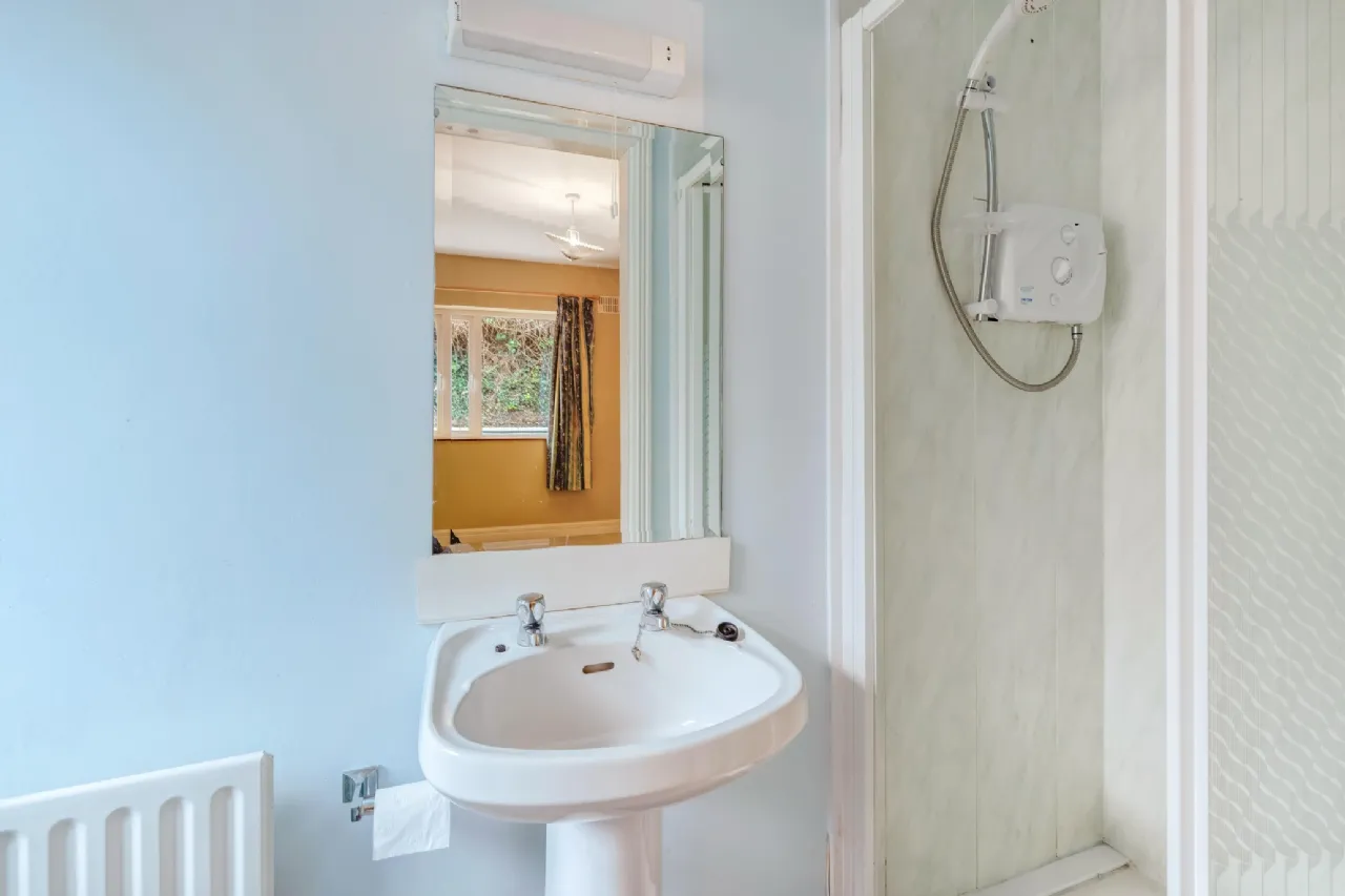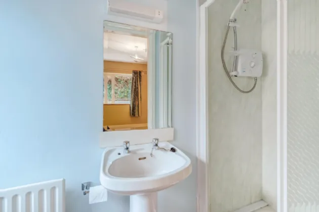 En-Suite 2.67m x 0.90m Vinyl flooring, shower, w.c., wash hand basin.