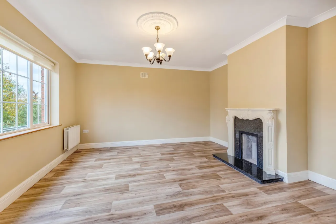 Sitting Room 4.63m x 4.25m Open hearth fireplace with marble surround, coving, centrepiece.
