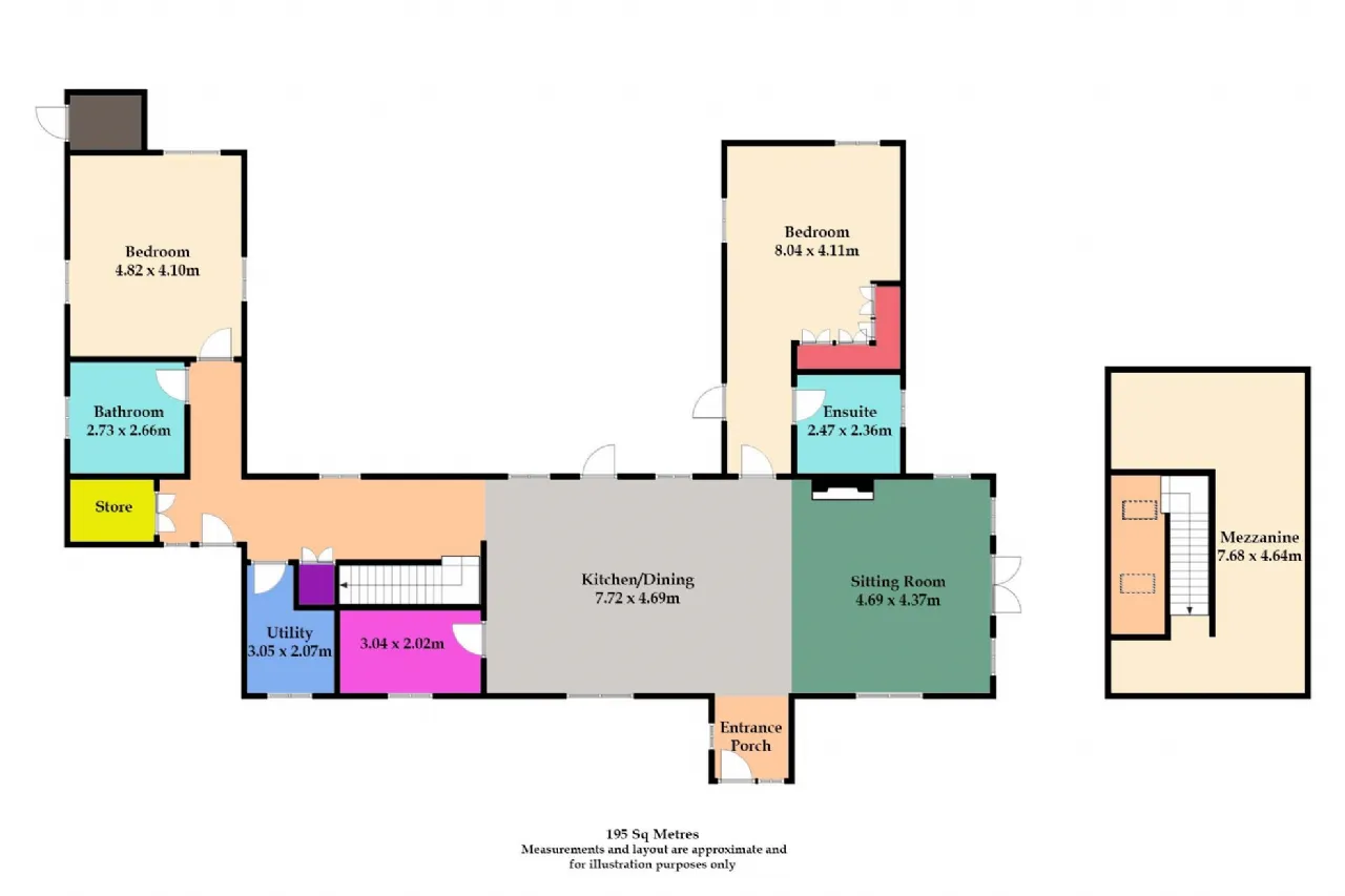 Designed with comfort and light in mind, this exceptional home combines sleek interior finishes with modern style and generous proportions. Extending to approximately 195 sq.m, the property offers a superb sense of space and flow. The heart of the home is an impressive open-plan kitchen/dining/living area, perfect for both everyday living and entertaining. A utility room and a walk-in pantry provide everyday convenience, while a mezzanine level introduces a unique architectural feature. The sleeping accommodation comprises two generously sized bedrooms, including a master with ensuite, complemented by a family bathroom.