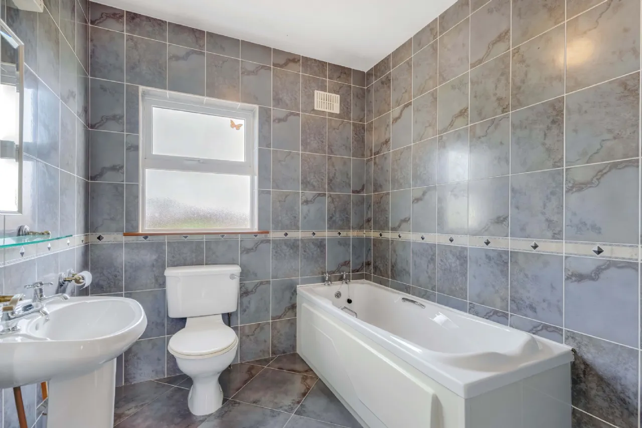 Bathroom 2.30m x 2.14m Fully tiled, bath, w.c., wash hand basin.