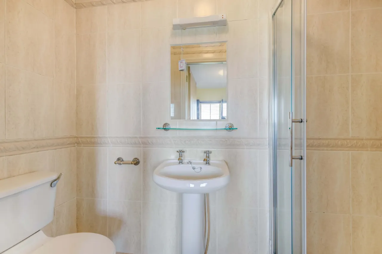 En-Suite 2.42m x 1.15m Fully tiled, electric shower, w.c., wash hand basin.