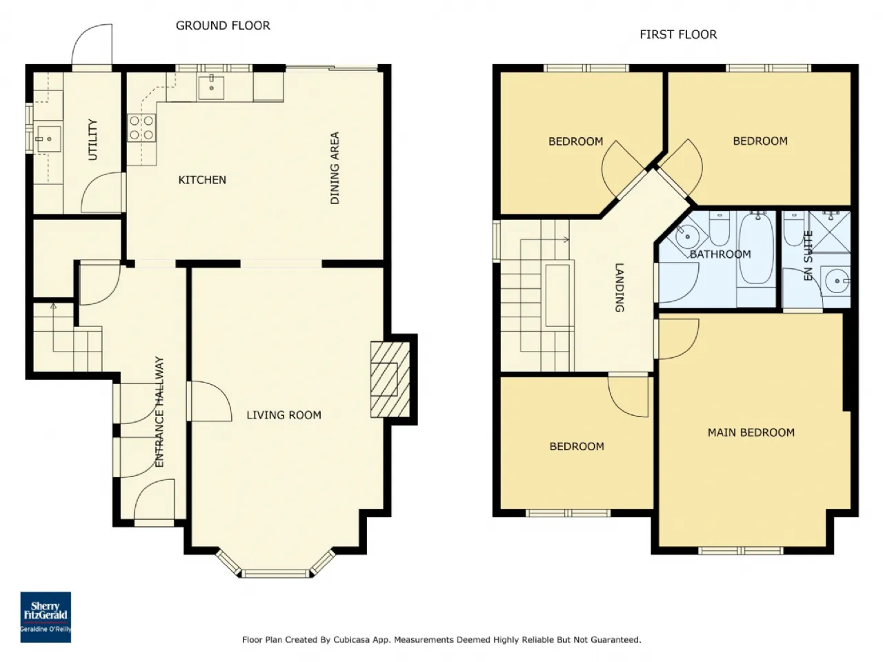 Upstairs comprises four generously sized bedrooms, including a master bedroom with an ensuite bathroom. A well-appointed family bathroom completes the upper level.