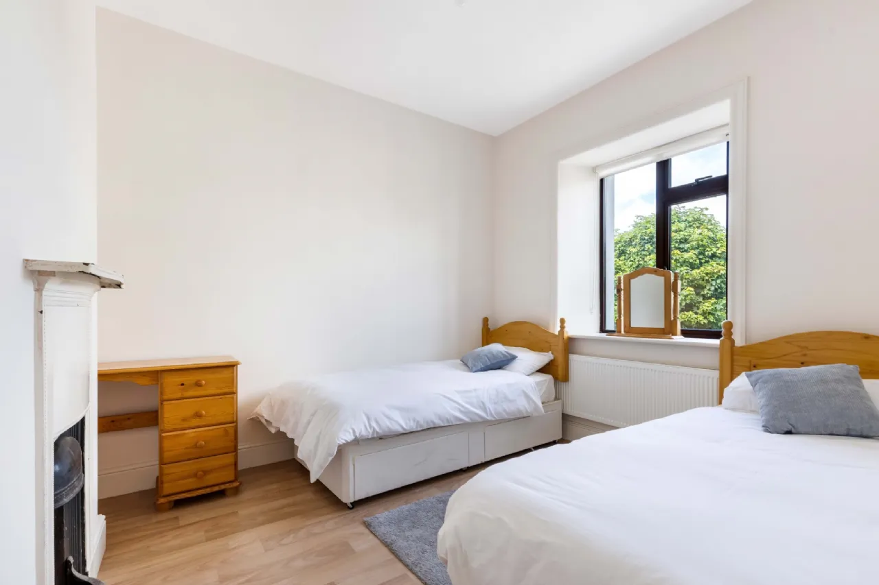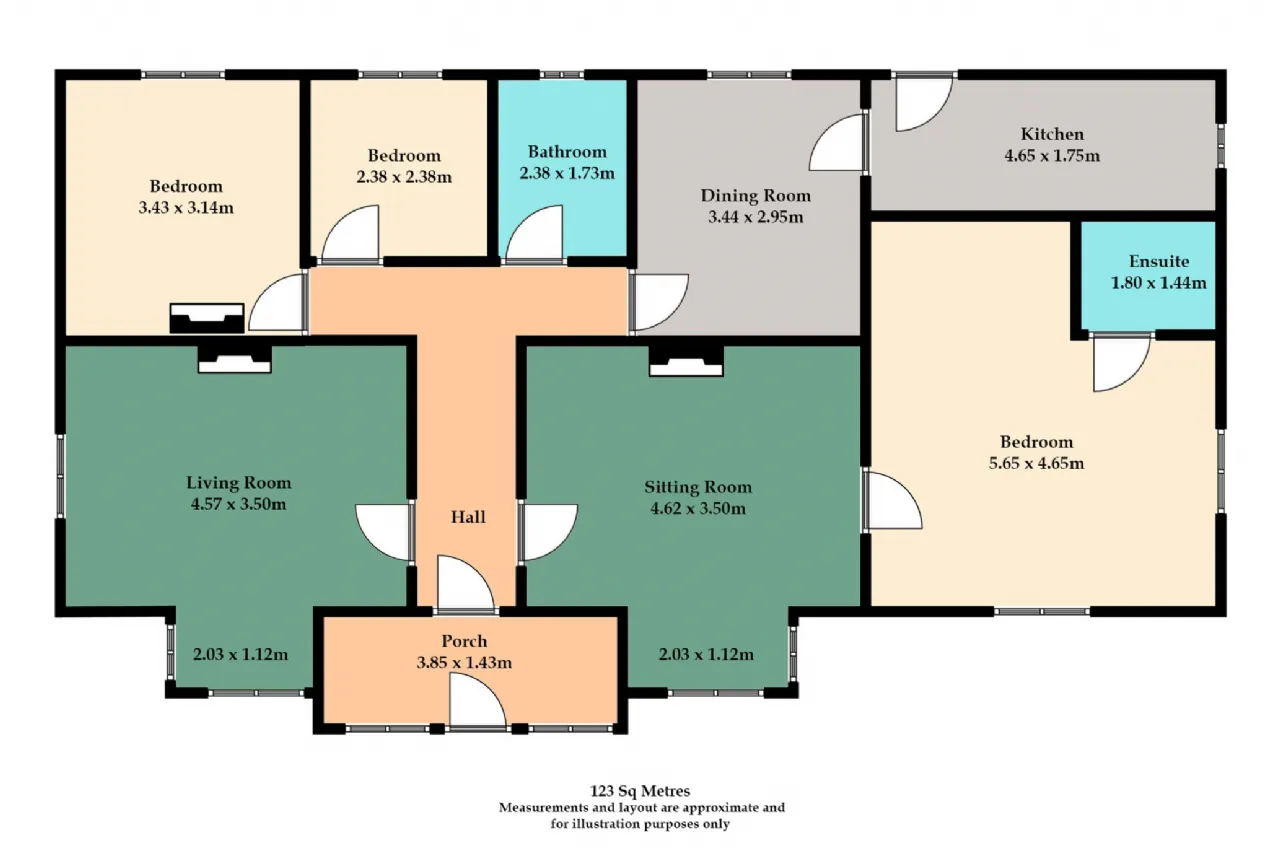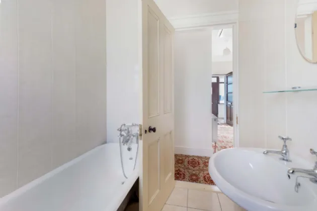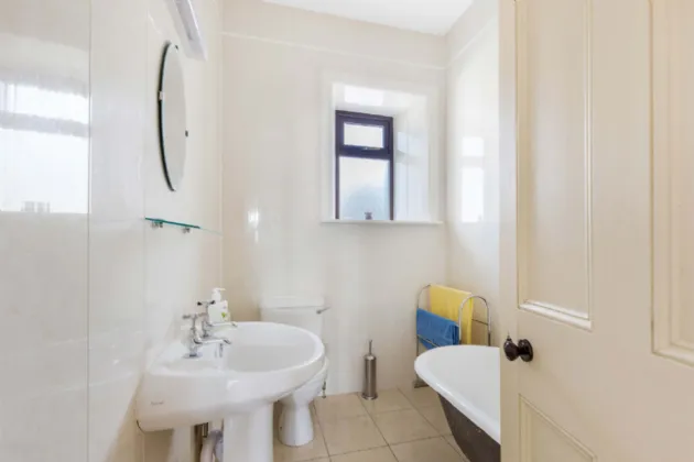 The tiled porch is a suntrap. The spacious reception rooms boast an abundance of natural light from the box windows. To the rear of the property there are two bedrooms, the main bathroom and a comfortable dining space adjoining the kitchen. A generous master bedroom together with an en-suite bathroom complete approx. 123 sq. m. of accommodation.
