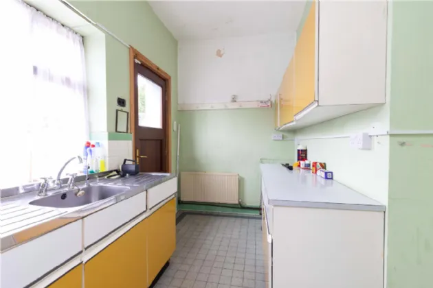 Kitchen 3.11m x 1.90m Tiled floor, fitted units, door to rear.