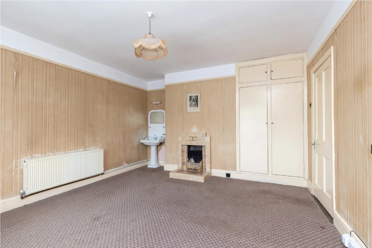 Bedroom 4 5.15m x 4.00m Vinyl flooring, open hearth fireplace with tile surround.