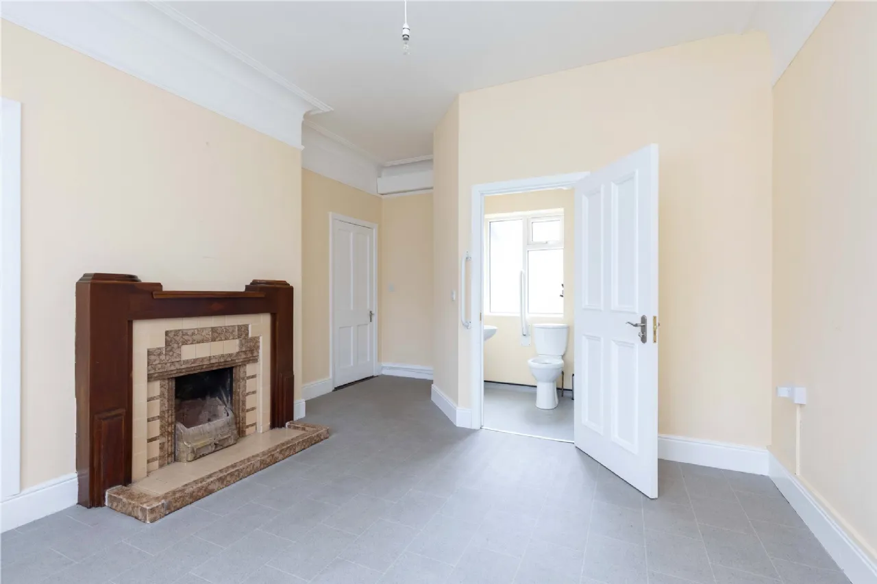 Reception Room / Bedroom 5.15m x 4.01m Vinyl flooring, open hearth fireplace with tile and timber surround.