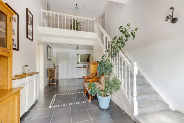 Beyond the attractive Bradstone facade 230 sq. m. approx. of spacious light filled accommodation perfectly suited to family living. On entry the elegant hallway with its vaulted ceiling is the centrepiece of this delightful home with the staircase leading to the galleried upper level.