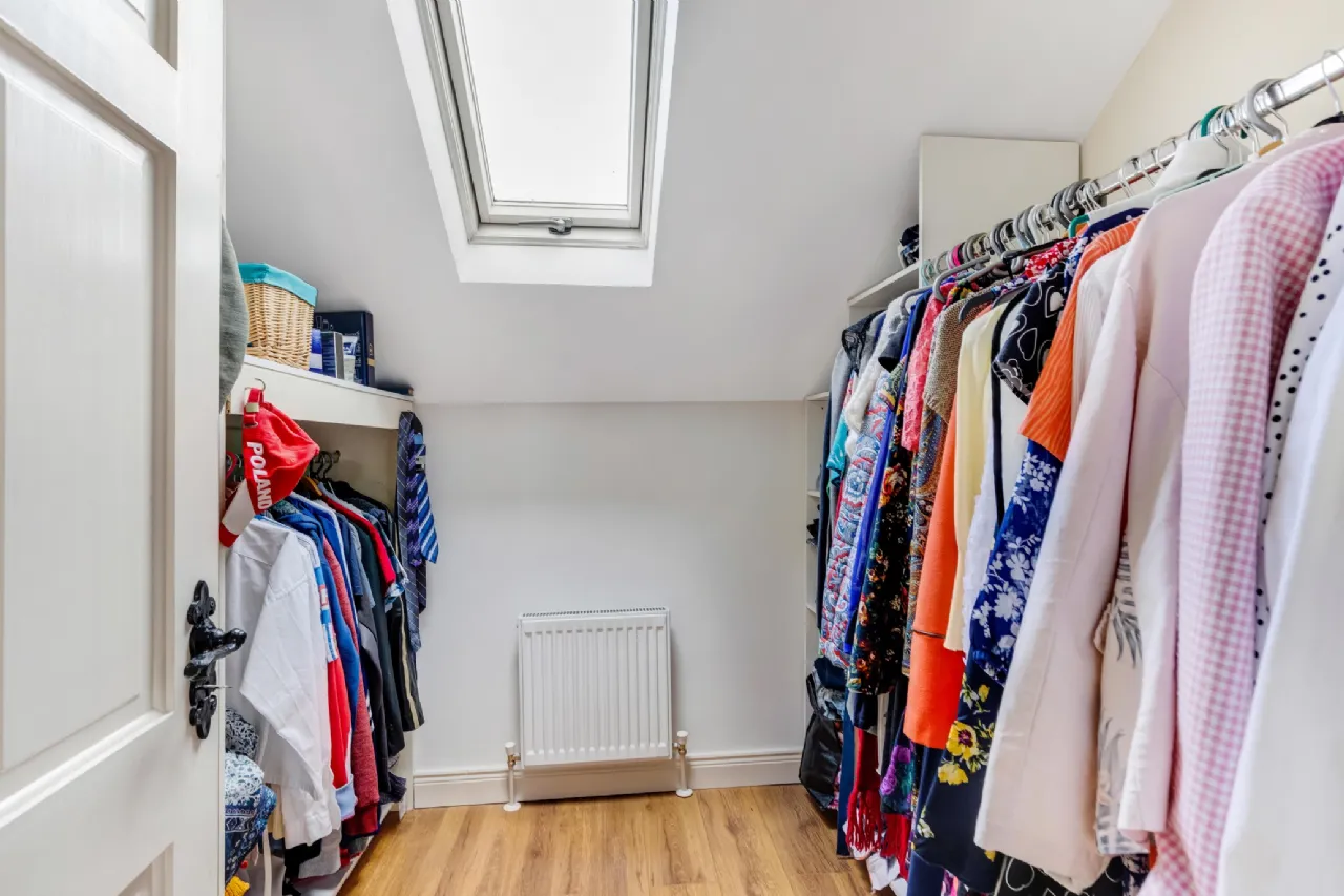 Walk in Wardrobe 2.15m x 2.22m Laminate flooring.