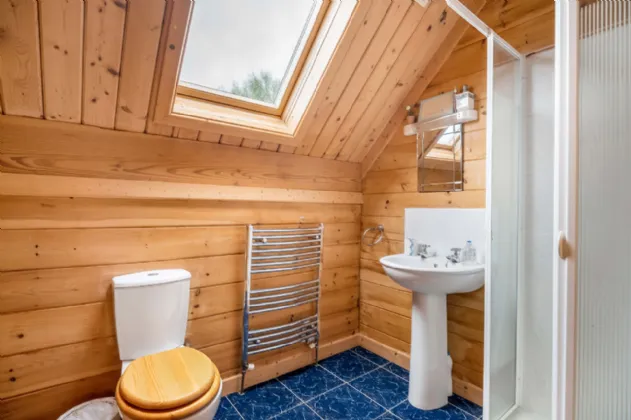 Bathroom 2.24m x 1.91m Part tiled, w.c. wash hand basin, heated towel rail and shower.