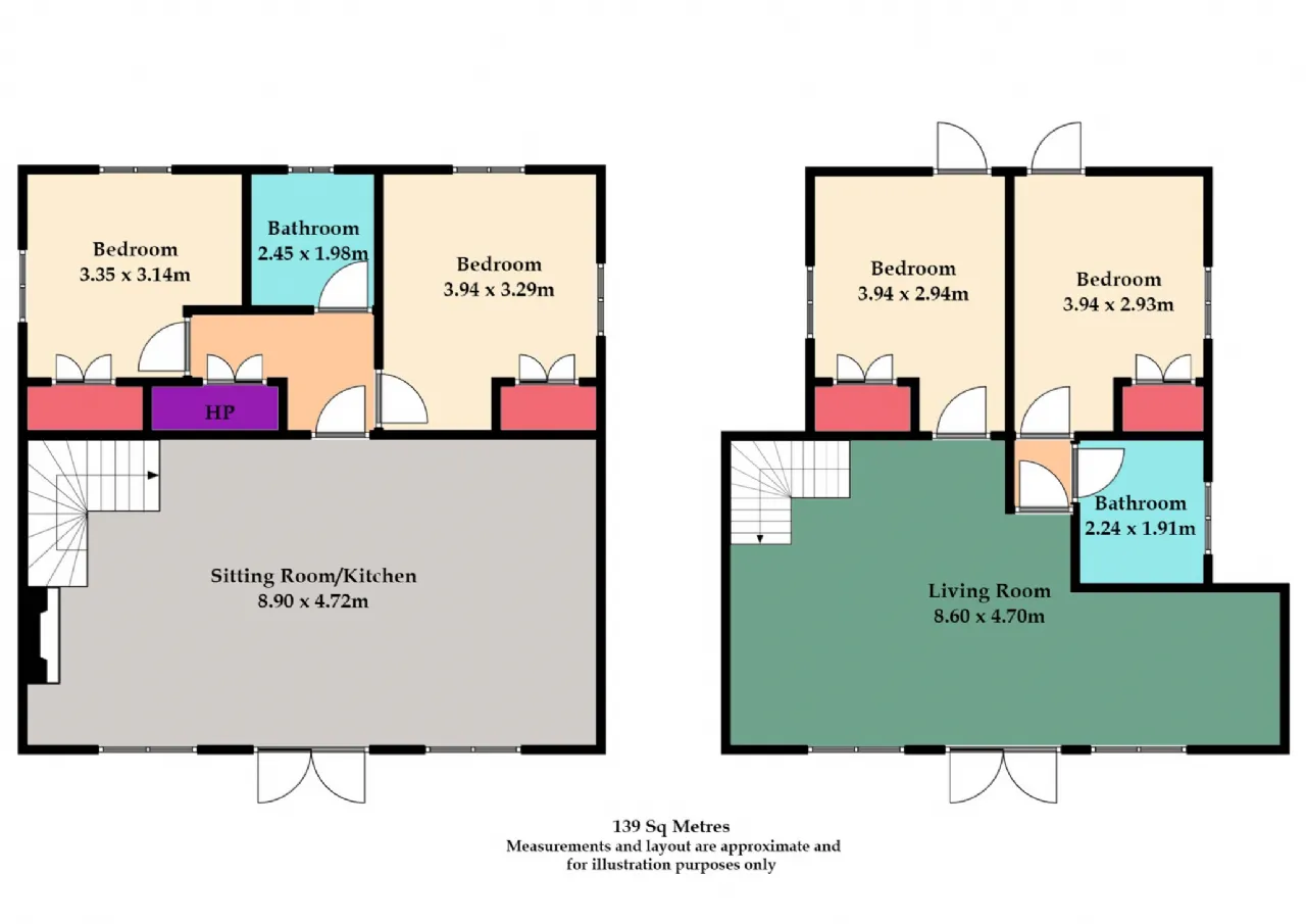 Bedroom 2 3.94m x 3.29m Built in wardrobes.
