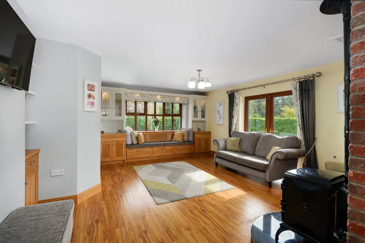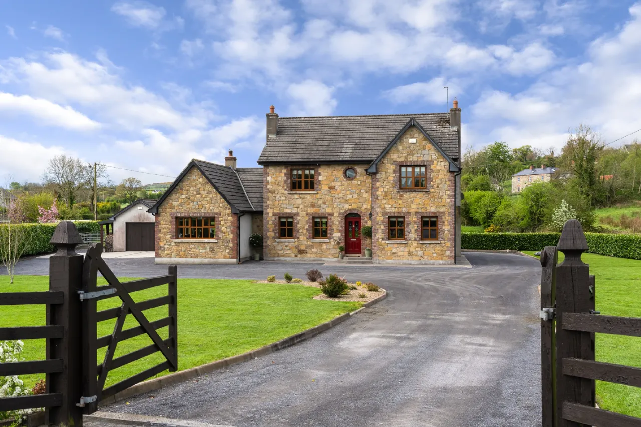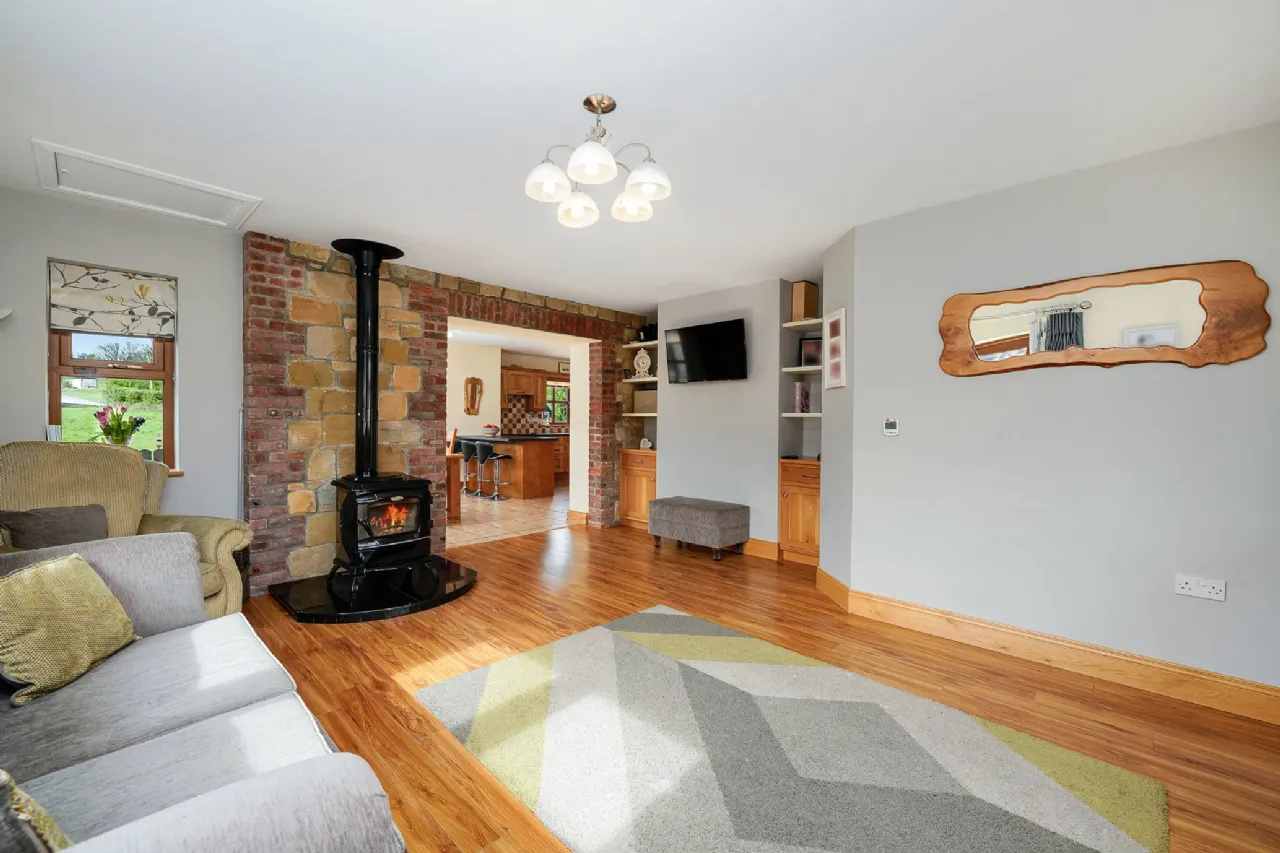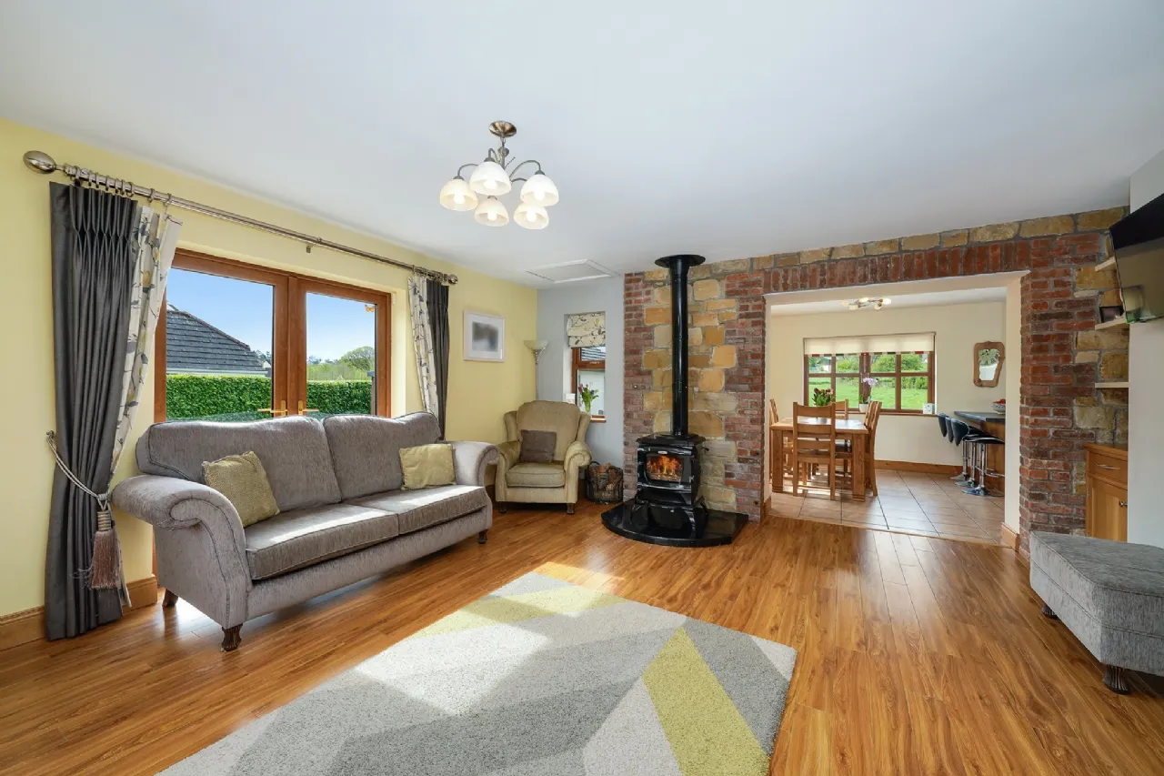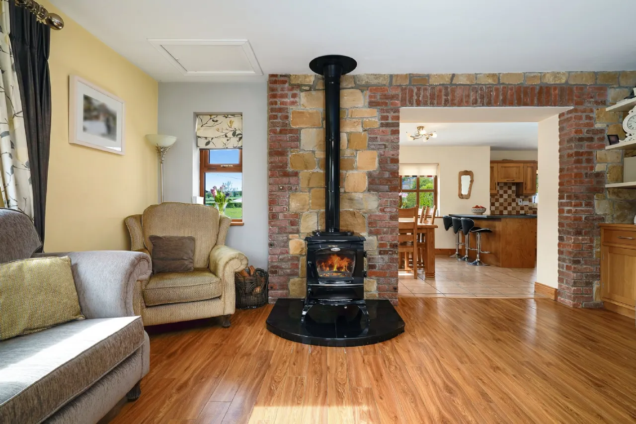 From the moment you arrive, the hallmark stone façade and manicured gardens set the tone for the quality throughout. The home boasts three elegant living/sitting rooms. One sitting room with feature marble fireplace & stove, sitting room with feature open fire and cast iron insert and living room with feature stove creating warm and inviting spaces perfect for family living and entertaining. The heart of the home is a spacious, light-filled kitchen and dining area, complemented by 2 well-appointed utility rooms offering ample storage.