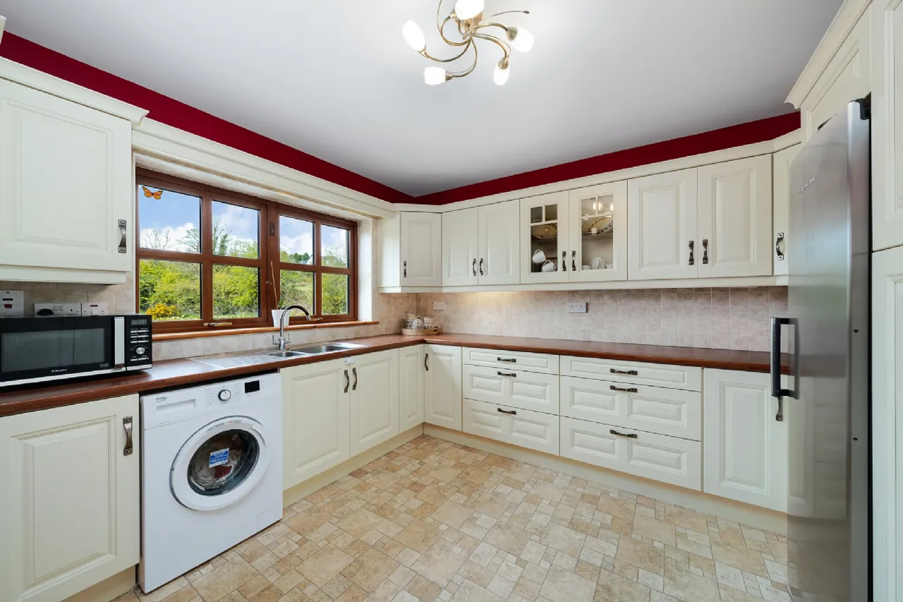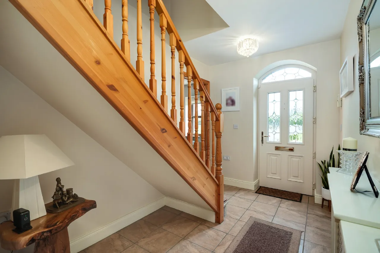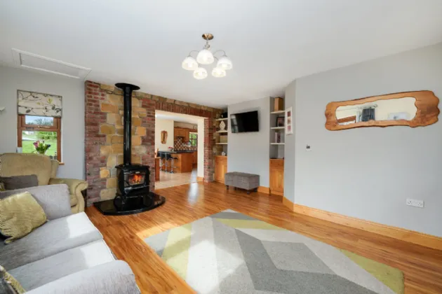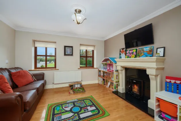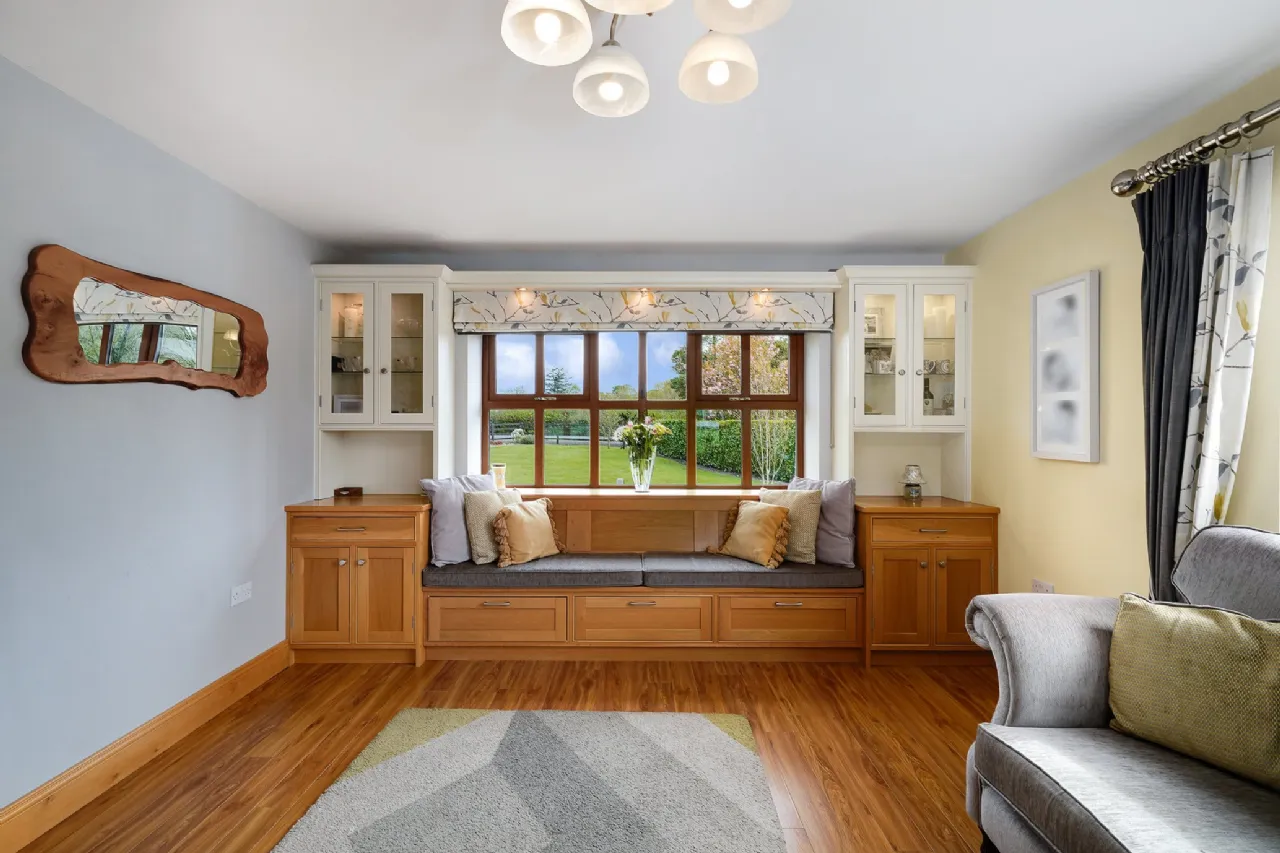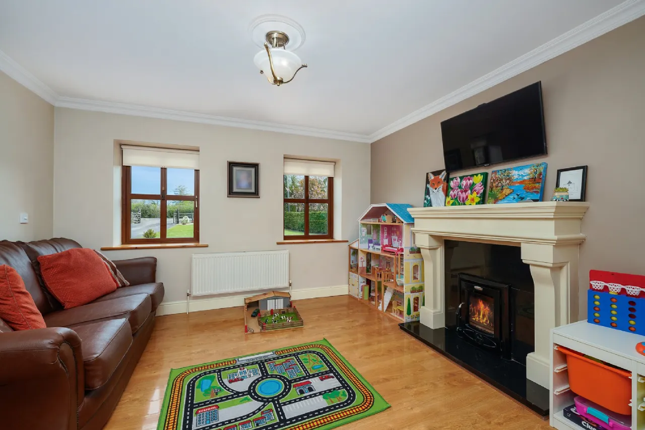 From the moment you arrive, the hallmark stone façade and manicured gardens set the tone for the quality throughout. The home boasts three elegant living/sitting rooms. One sitting room with feature marble fireplace & stove, sitting room with feature open fire and cast iron insert and living room with feature stove creating warm and inviting spaces perfect for family living and entertaining. The heart of the home is a spacious, light-filled kitchen and dining area, complemented by 2 well-appointed utility rooms offering ample storage.