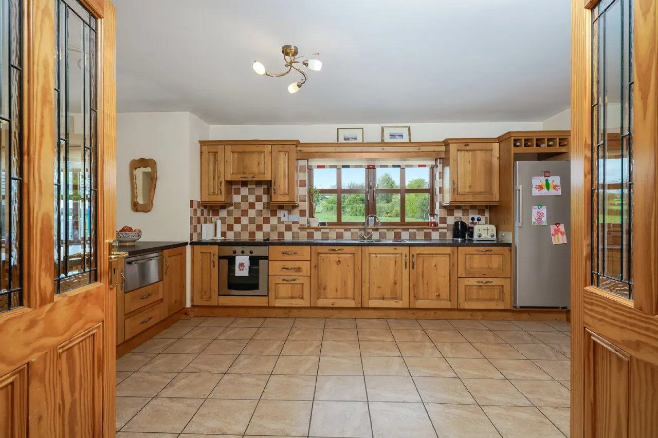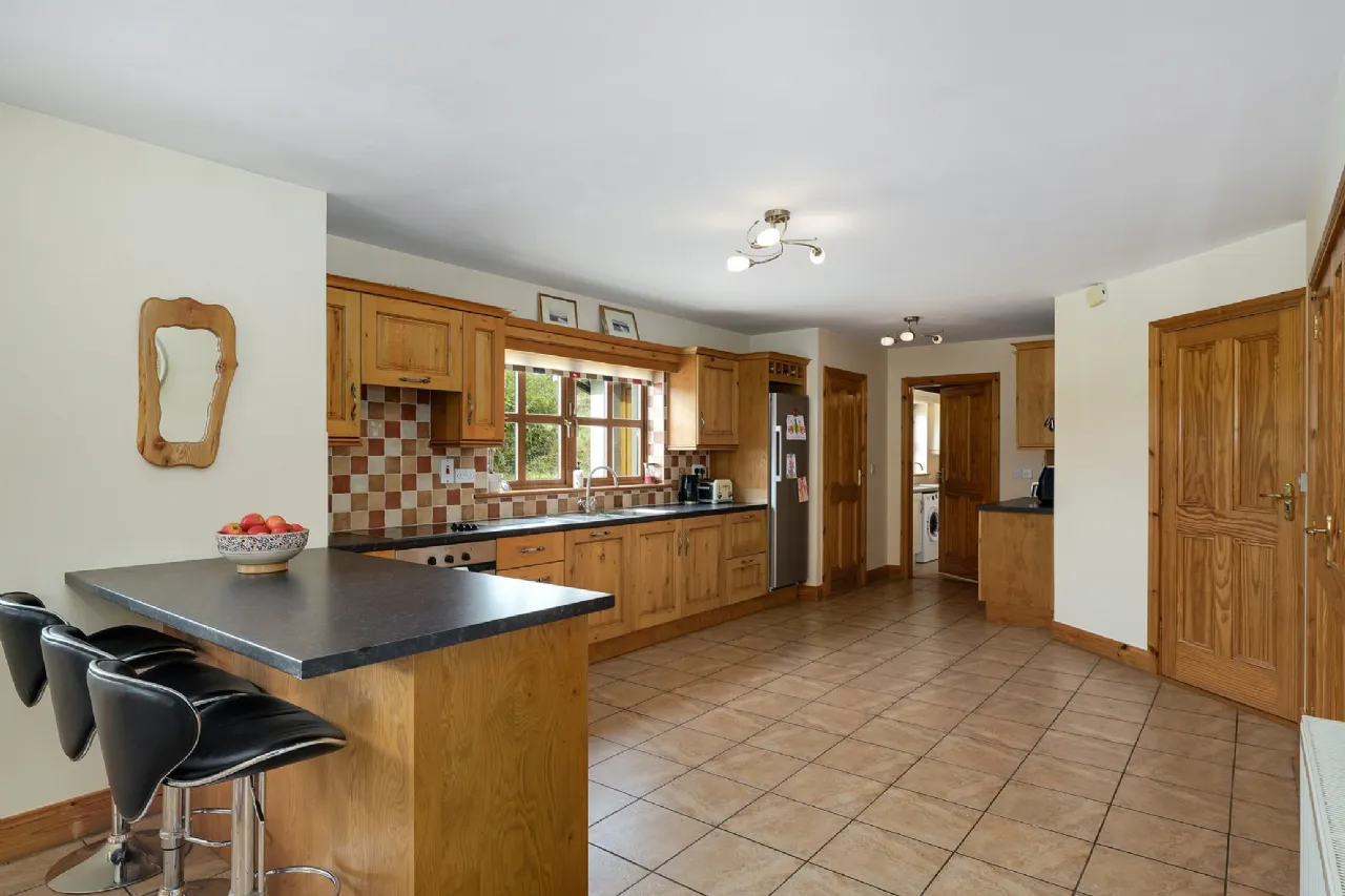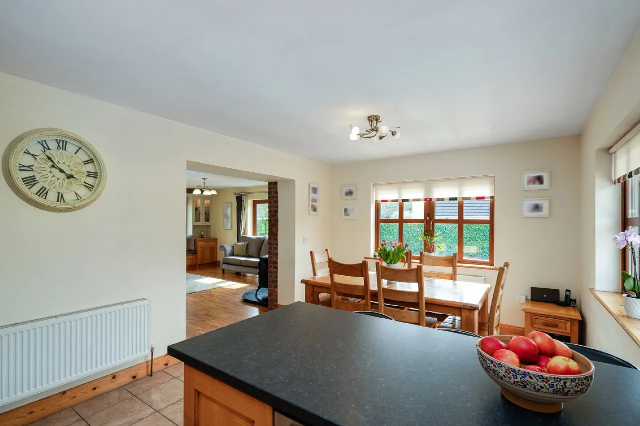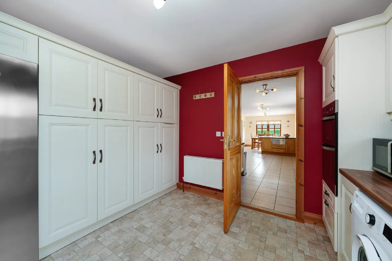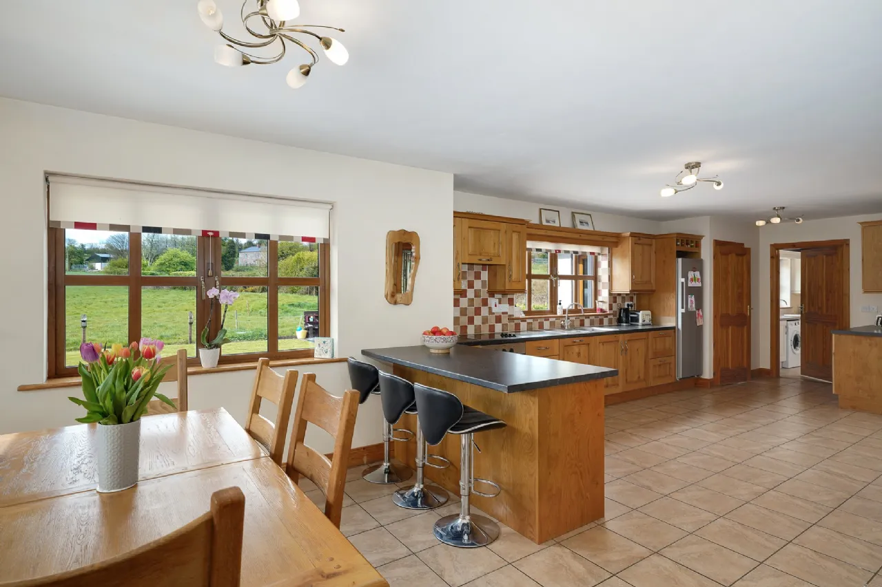 From the moment you arrive, the hallmark stone façade and manicured gardens set the tone for the quality throughout. The home boasts three elegant living/sitting rooms. One sitting room with feature marble fireplace & stove, sitting room with feature open fire and cast iron insert and living room with feature stove creating warm and inviting spaces perfect for family living and entertaining. The heart of the home is a spacious, light-filled kitchen and dining area, complemented by 2 well-appointed utility rooms offering ample storage.