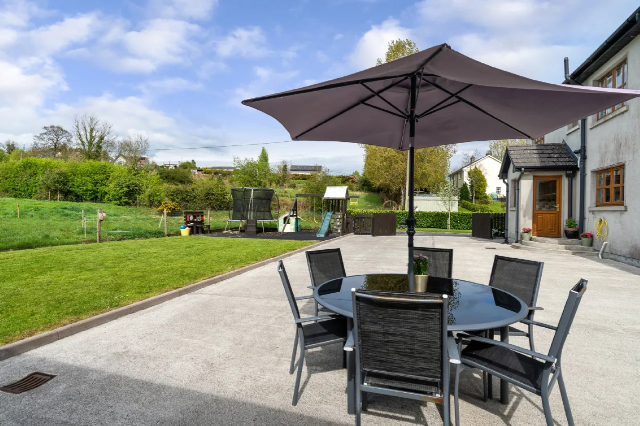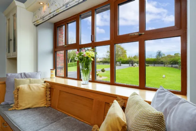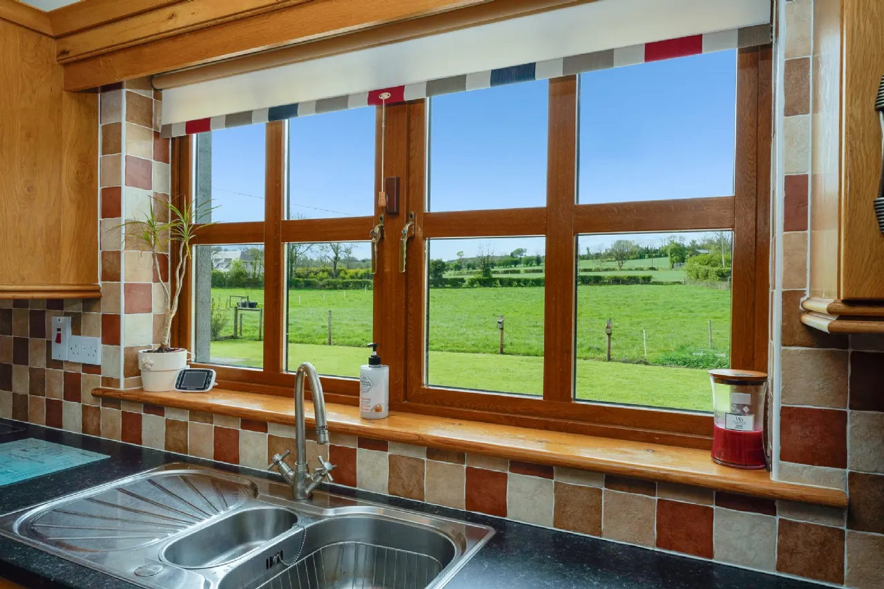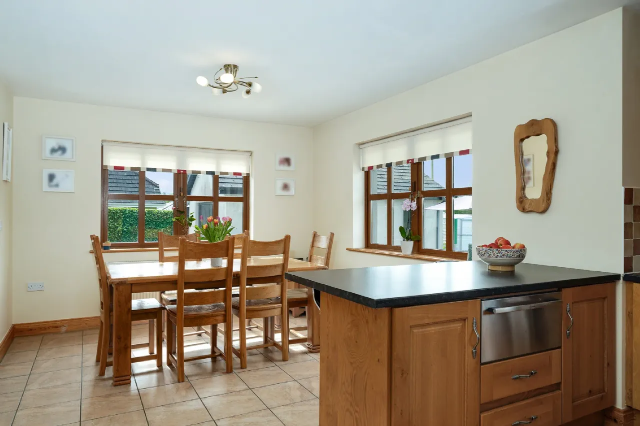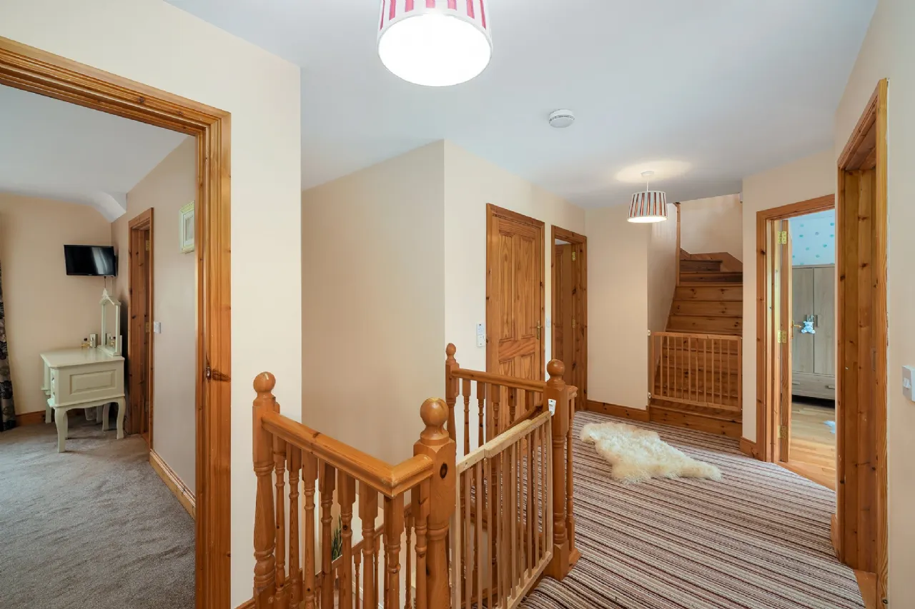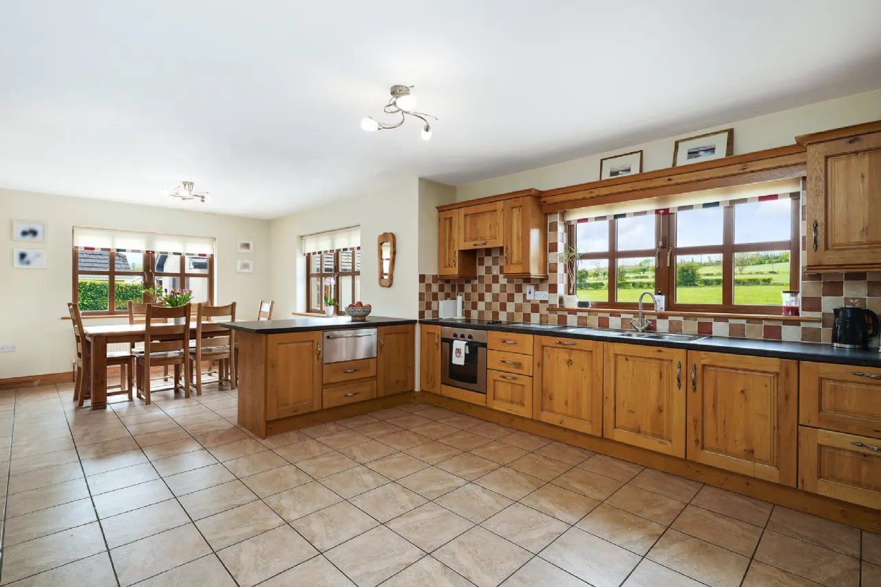 From the moment you arrive, the hallmark stone façade and manicured gardens set the tone for the quality throughout. The home boasts three elegant living/sitting rooms. One sitting room with feature marble fireplace & stove, sitting room with feature open fire and cast iron insert and living room with feature stove creating warm and inviting spaces perfect for family living and entertaining. The heart of the home is a spacious, light-filled kitchen and dining area, complemented by 2 well-appointed utility rooms offering ample storage.