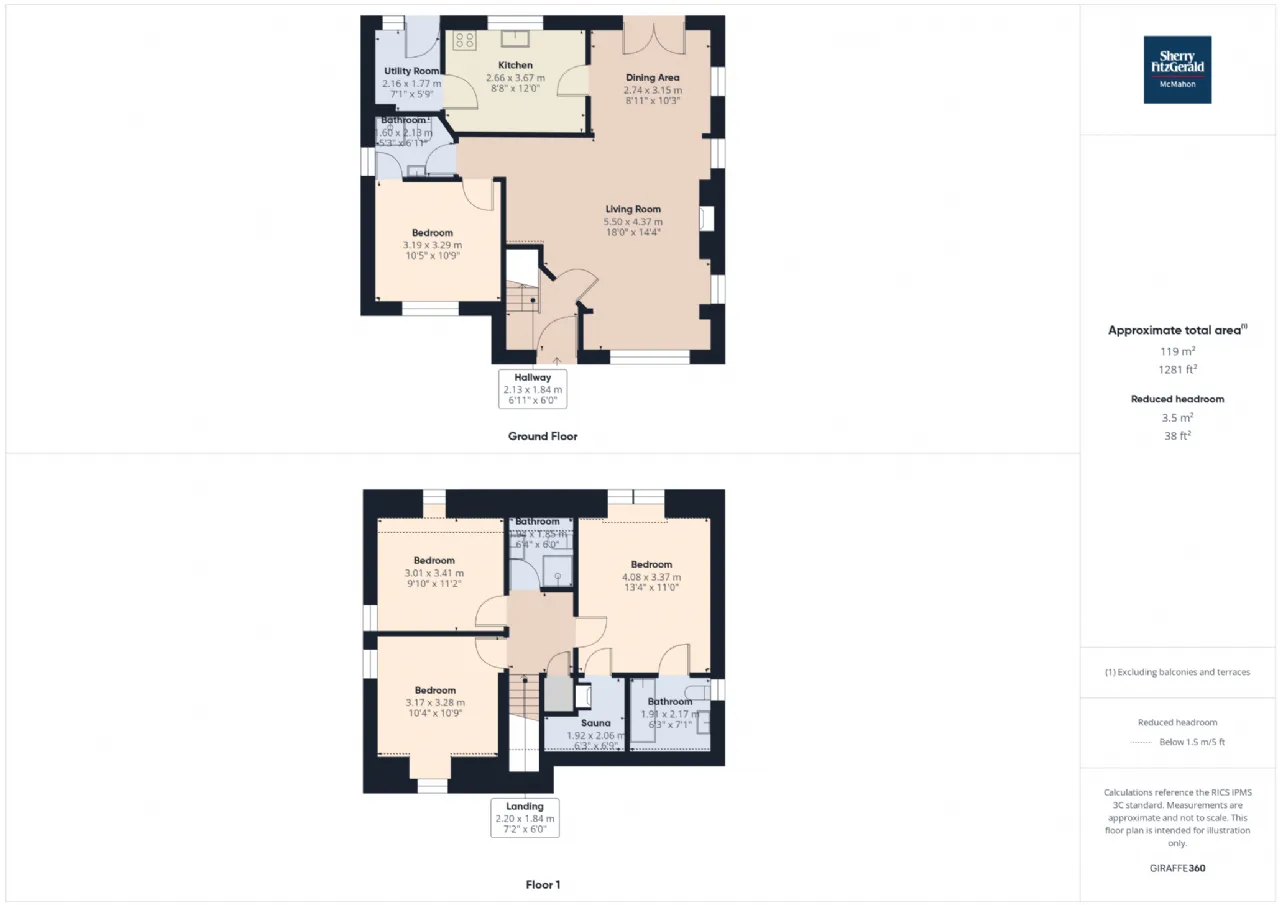 The ground floor includes a convenient downstairs bedroom, which also leads into the main bathroom. Upstairs, you’ll find three well-proportioned bedrooms one of which includes a sauna and an En-suite and the main family bathroom.