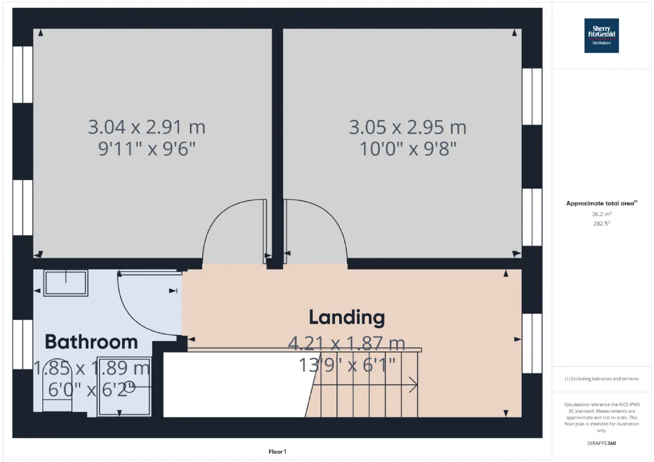 Landing Carpet flooring with doors granting access to both bedrooms & the main bathroom. Rear aspect window.