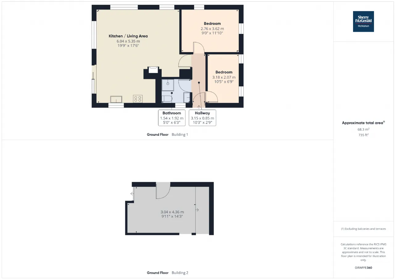 Bedroom 1 3.18m x 2.07m Timber flooring, two rear aspect windows