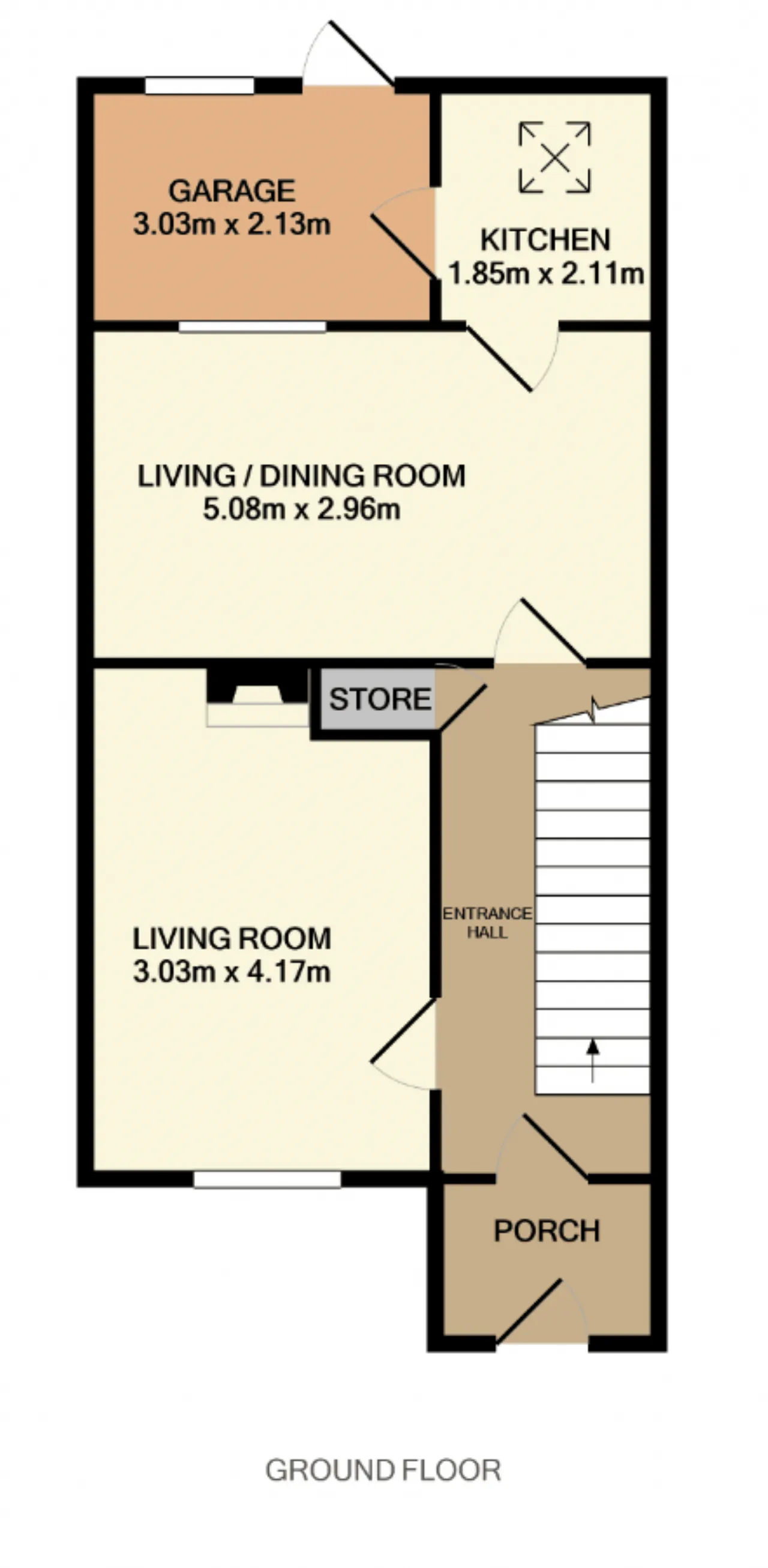 Garage 3.03 x 2.13 Storage room that could be incorporated to extend the kitchen or add a utility room. Access to rear garden.