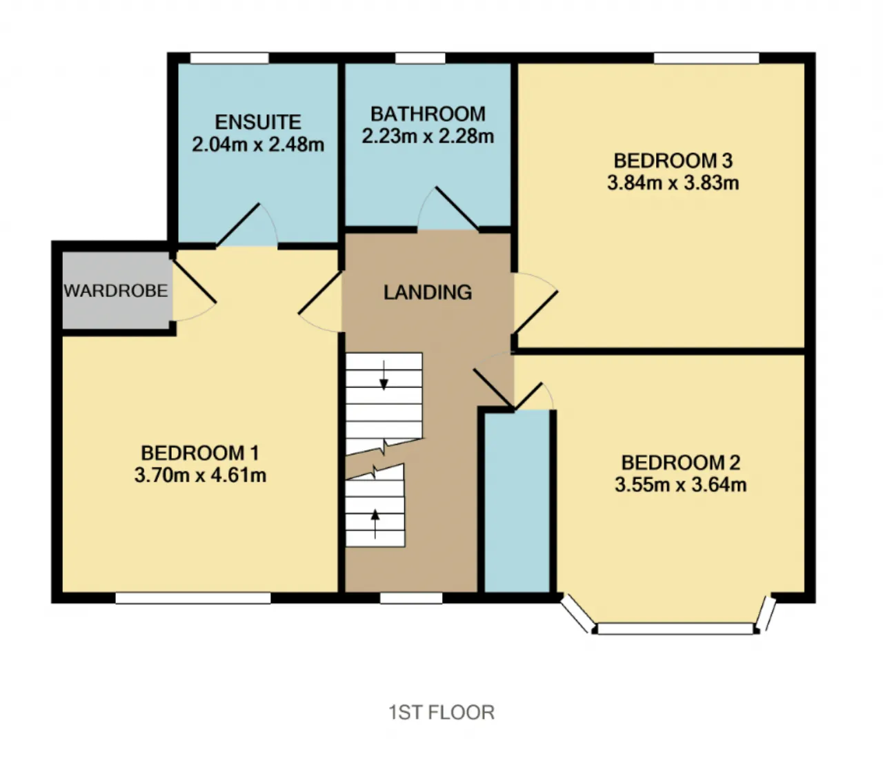 Bedroom 1 3.70 x 4.61 Part of the two-storey extension, this double bedroom has laminate wood flooring, centre light and wardrobe / closet.