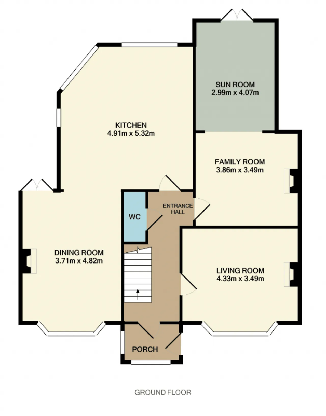 Sun Room 2.91 x 4.07 Located to the rear of the house, the sun room maximises the light from the west facing back garden. There is tiled flooring, recessed lighting and French doors to rear garden.