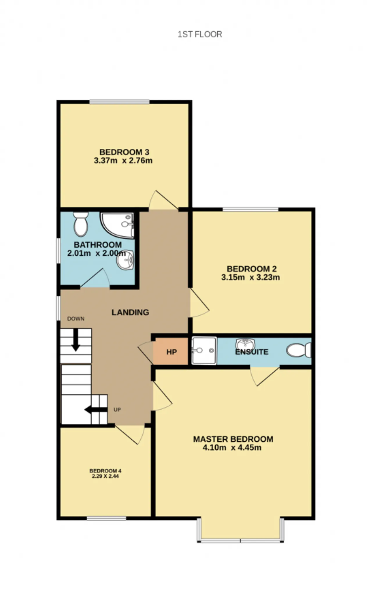 Master Bedroom 4.10m x 4.45m A generous double bedroom featuring carpet flooring, a built-in wardrobe, a striking bay window to the front of the property and the benefit of an ensuite.