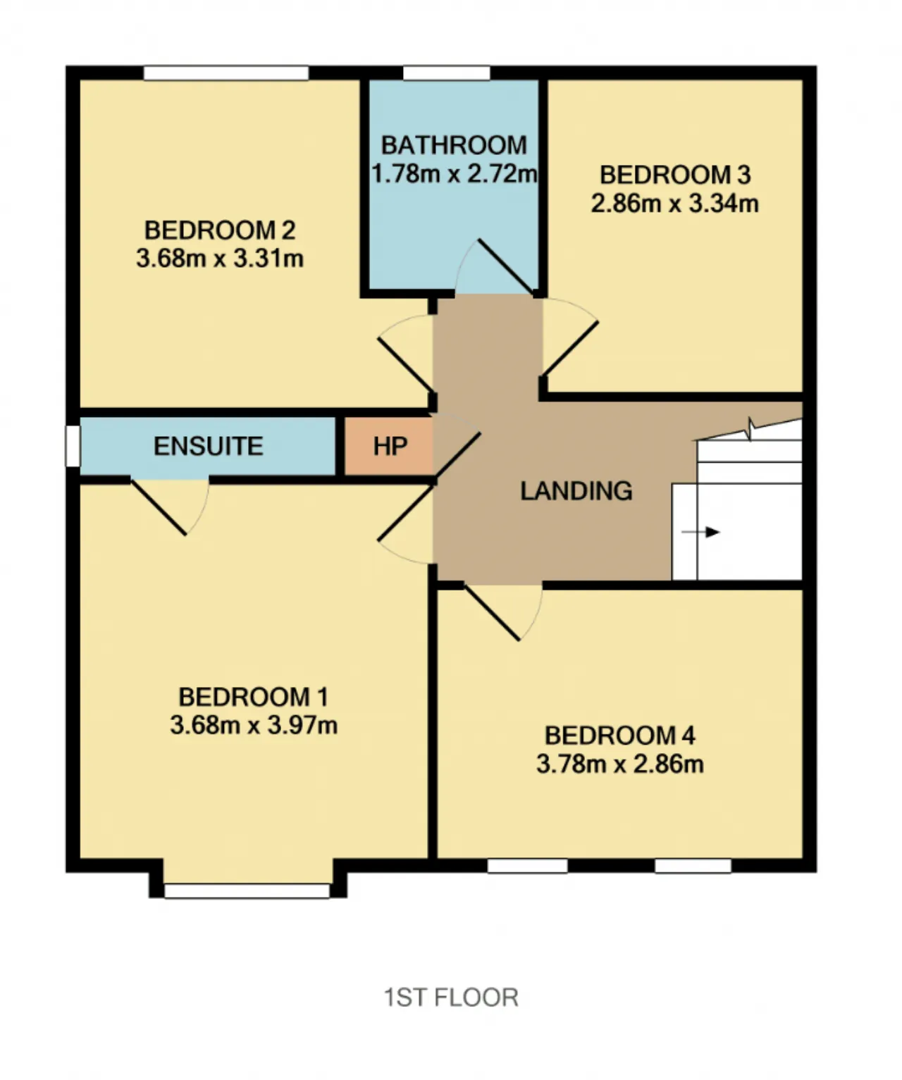 Bedroom 4 3.78 x 2.86 Double bedroom to the front of the house with carpet flooring, centre light and fitted wardrobe.