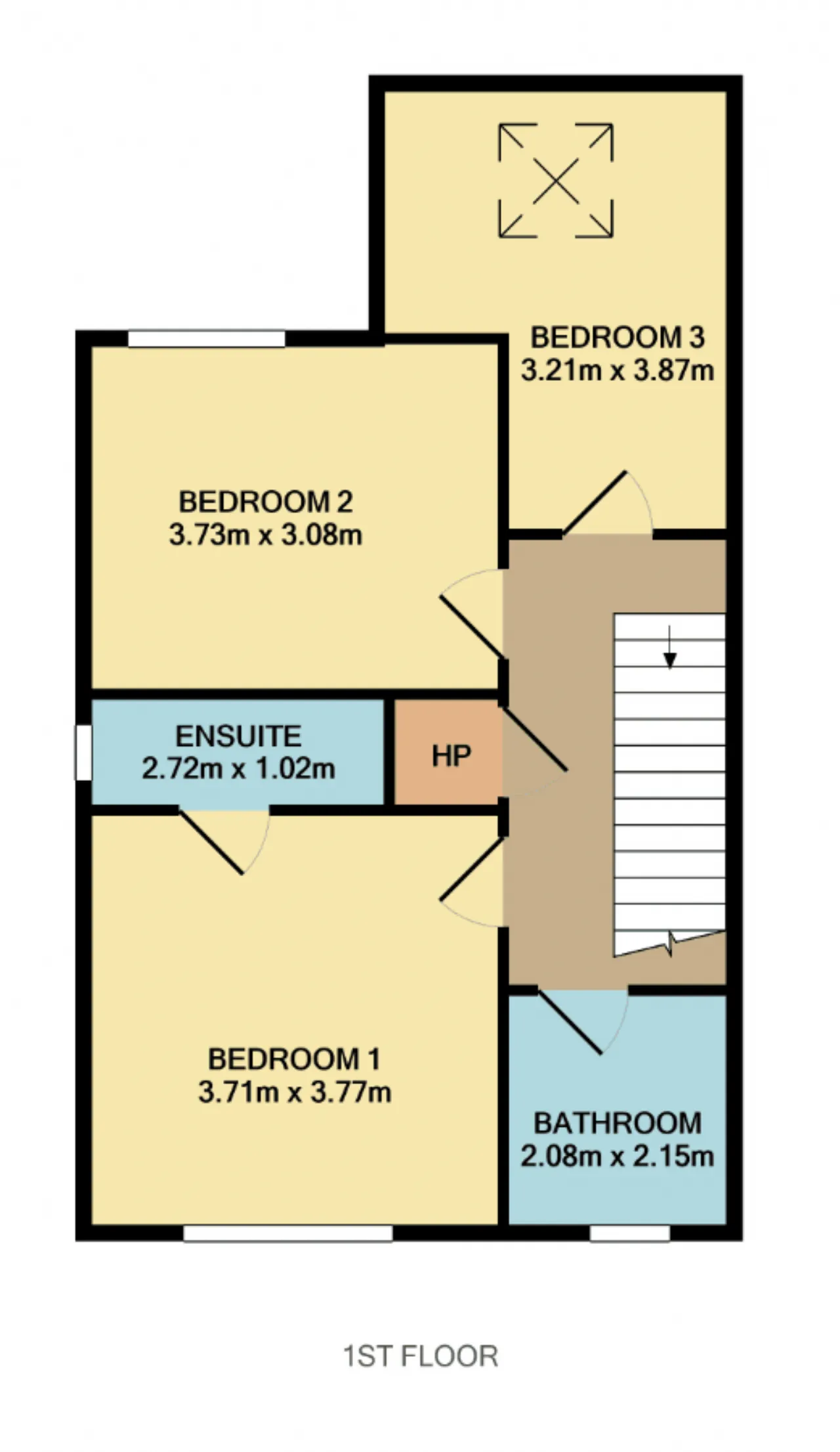 Overhead, there are three double bedrooms (one en-suite) and a main bathroom.