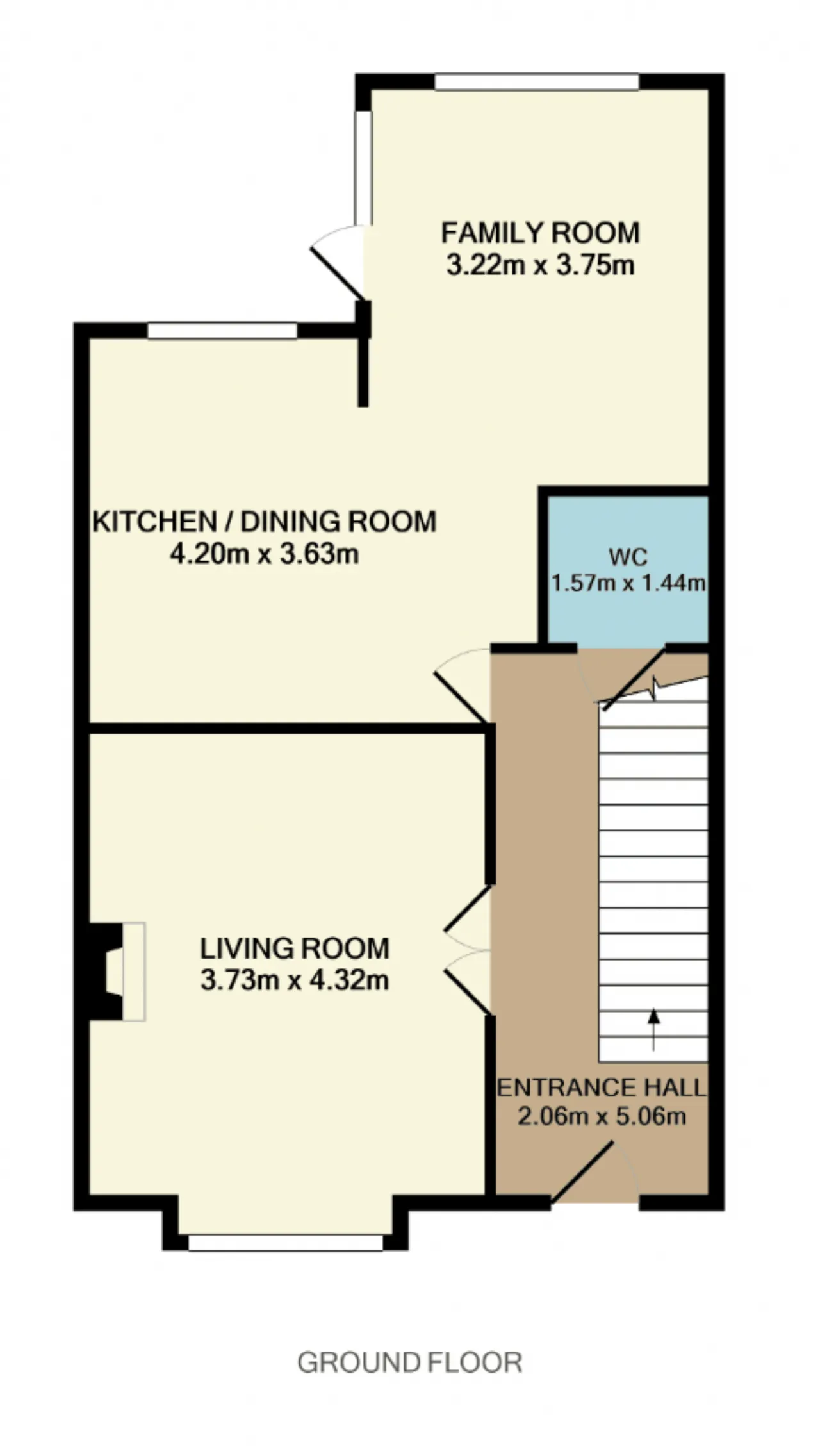 Family Room 3.22 x 3.75 The kitchen / dining room is open plan to the family area that enjoys superb natural light and offers access to the rear patio and garden area.